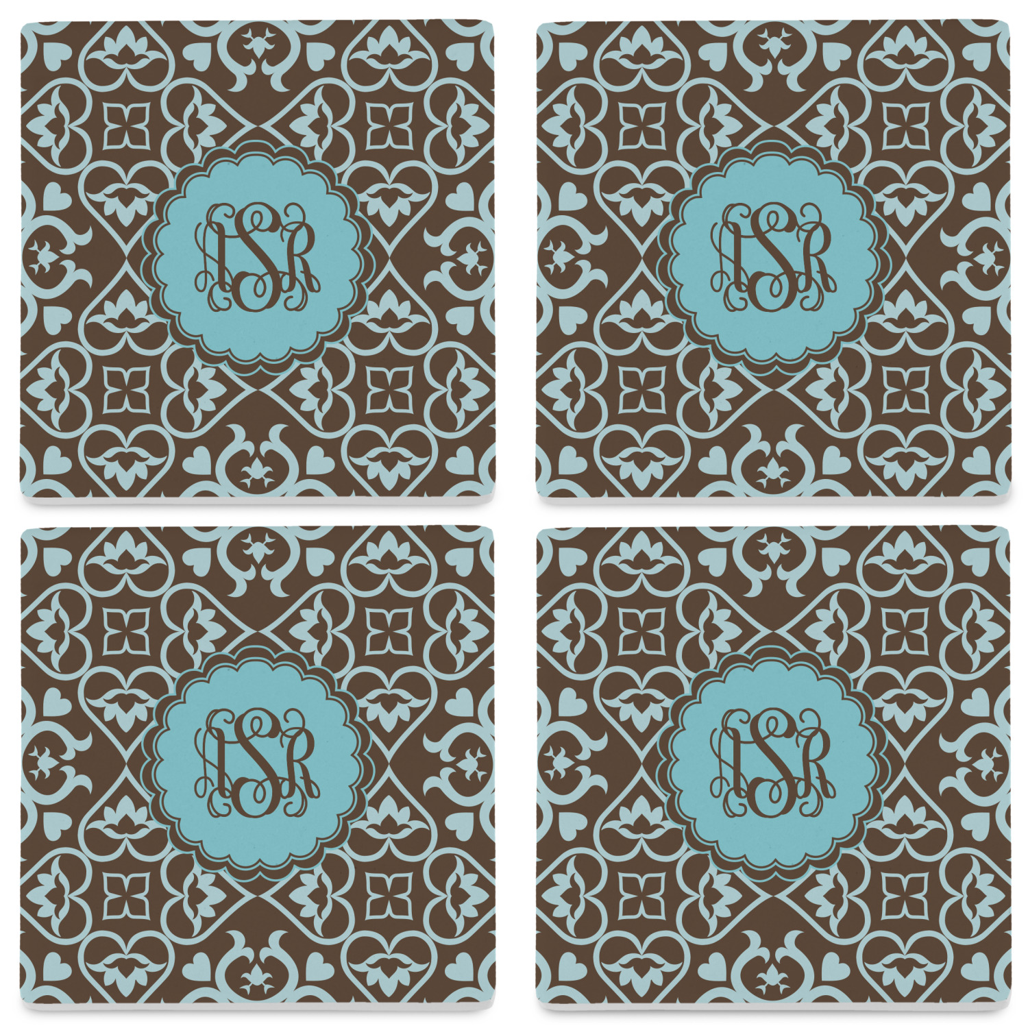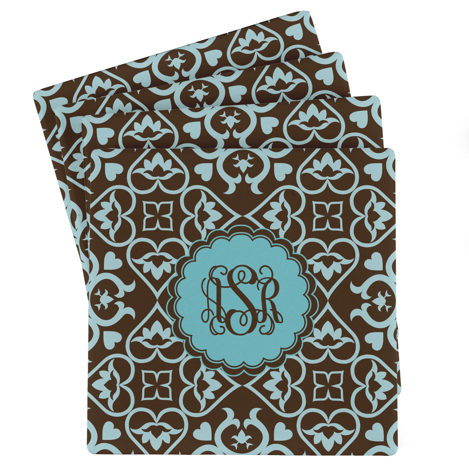 At YouCustomizeIt.com, you can put any design on the coasters. You can upload your own design, photo or logo; you can customize one of our designs and customize the patterns, colors, fonts etc.