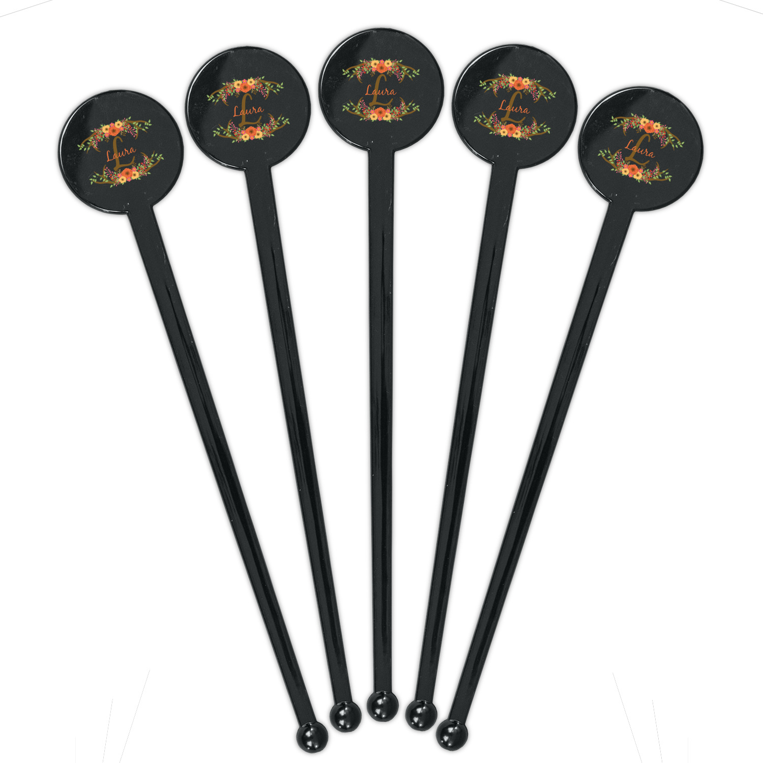 Farmhouse Designs for 7" Round Plastic Stir Sticks - Black - Single-Sided