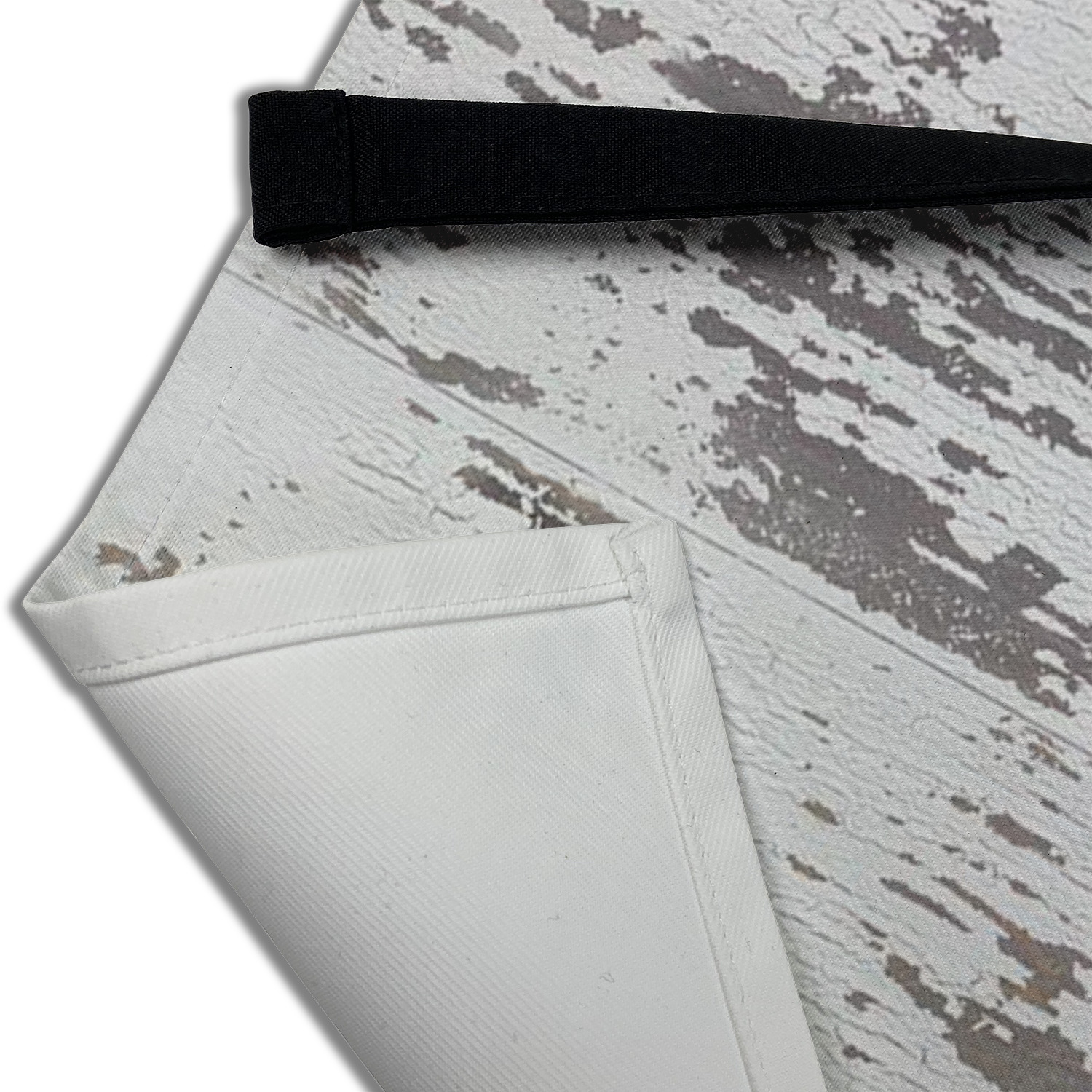 Our aprons are a lightweight yet durable polyester material. We offer two styles of aprons, one without pockets and one with two pockets adorning the center near the waistline. Each apron is one size* and comes with adjustable straps for both the neckline and waist. We print your custom design on the front of the apron to display your creativity!