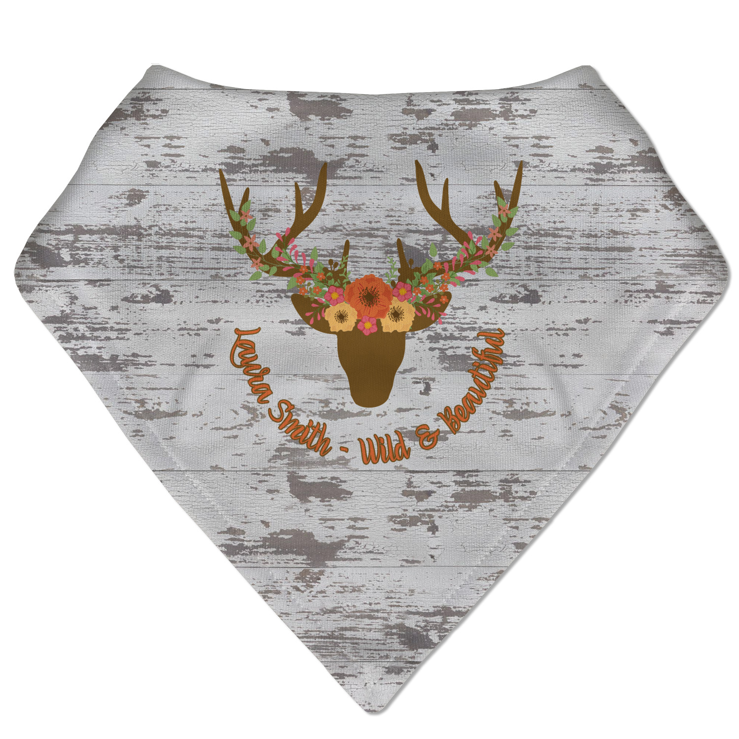 This design has a fun distressed shiplap background that is tones of white and grey. On top of this is an adorable deer illustration with flowers surrounding its antlers. Underneath is a curving area for personalization. Add your name or a fun saying. You will find brown, pink, peach, yellow, and green in this fun design.