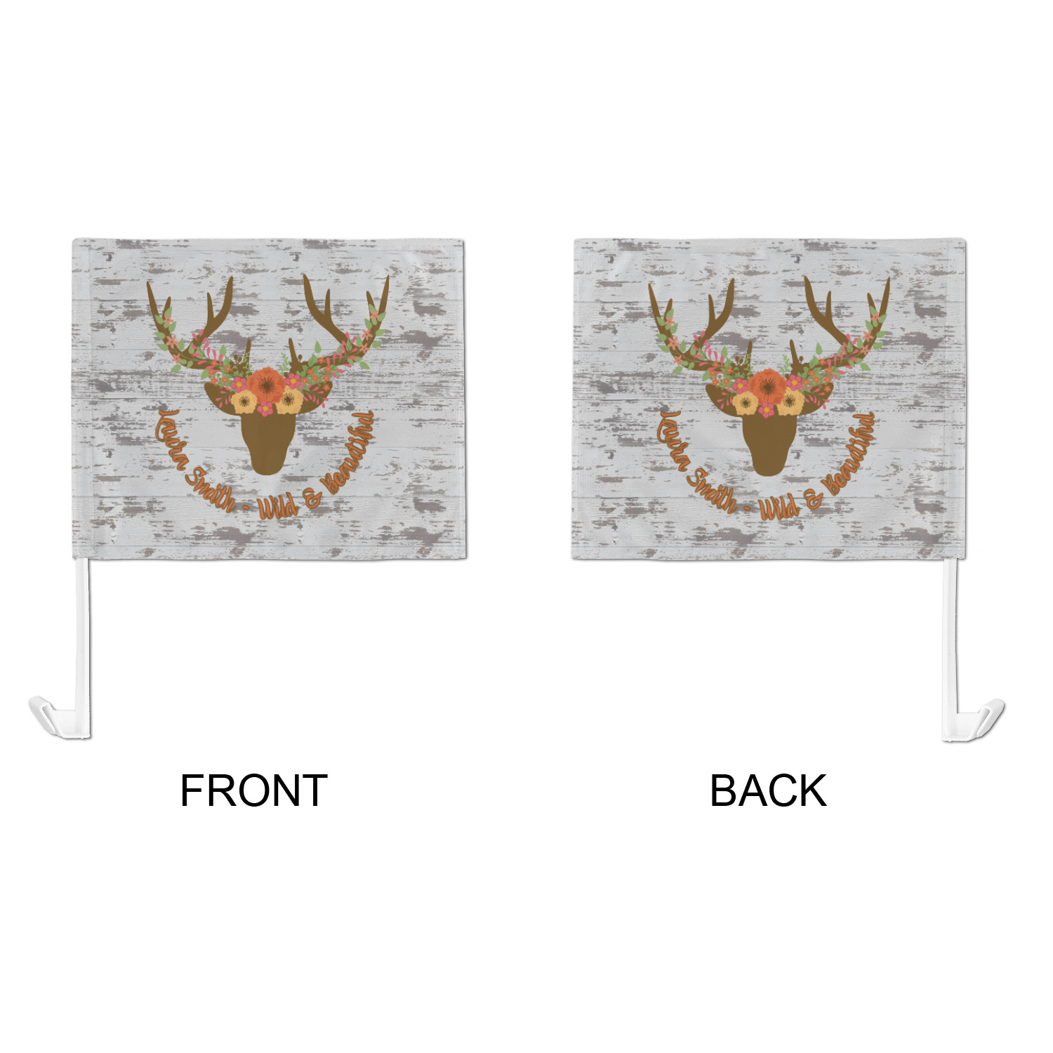 Our personalized flags are made from a durable, yet lightweight cloth that will proudly bear your logo or design of choice, while withstanding the outside elements. We have two size options - 8" x 11" and 11" x 15". Both come with a flag pole which includes a clip that secures the pole to the side window, whether it is rolled up or down. The flags are printed on both sides to display your design from all directions.