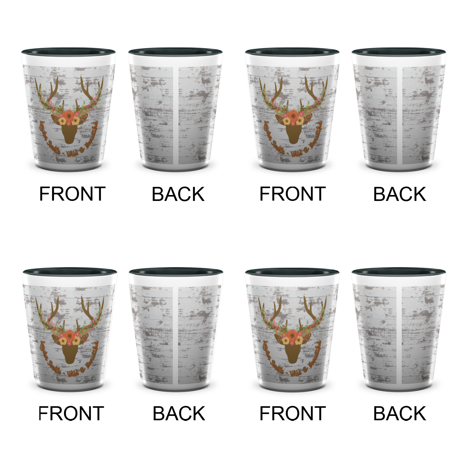 Made from ceramic these shot glasses are printed in full color with the design of your choice. These are a standard 1.5oz size and stand 2.25" tall. Available in a full white ceramic or a two-tone with a black color inside the shot glass. Buy a single or a set of 4, all of which can be designed separately to get you just what you want and need.