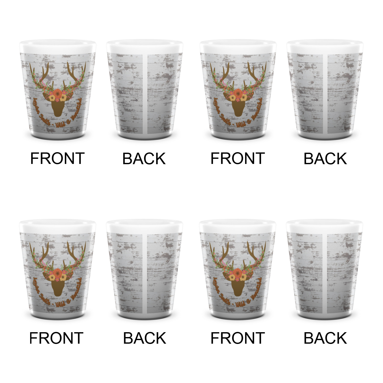 Made from ceramic these shot glasses are printed in full color with the design of your choice. These are a standard 1.5oz size and stand 2.25" tall. Available in a full white ceramic or a two-tone with a black color inside the shot glass. Buy a single or a set of 4, all of which can be designed separately to get you just what you want and need.