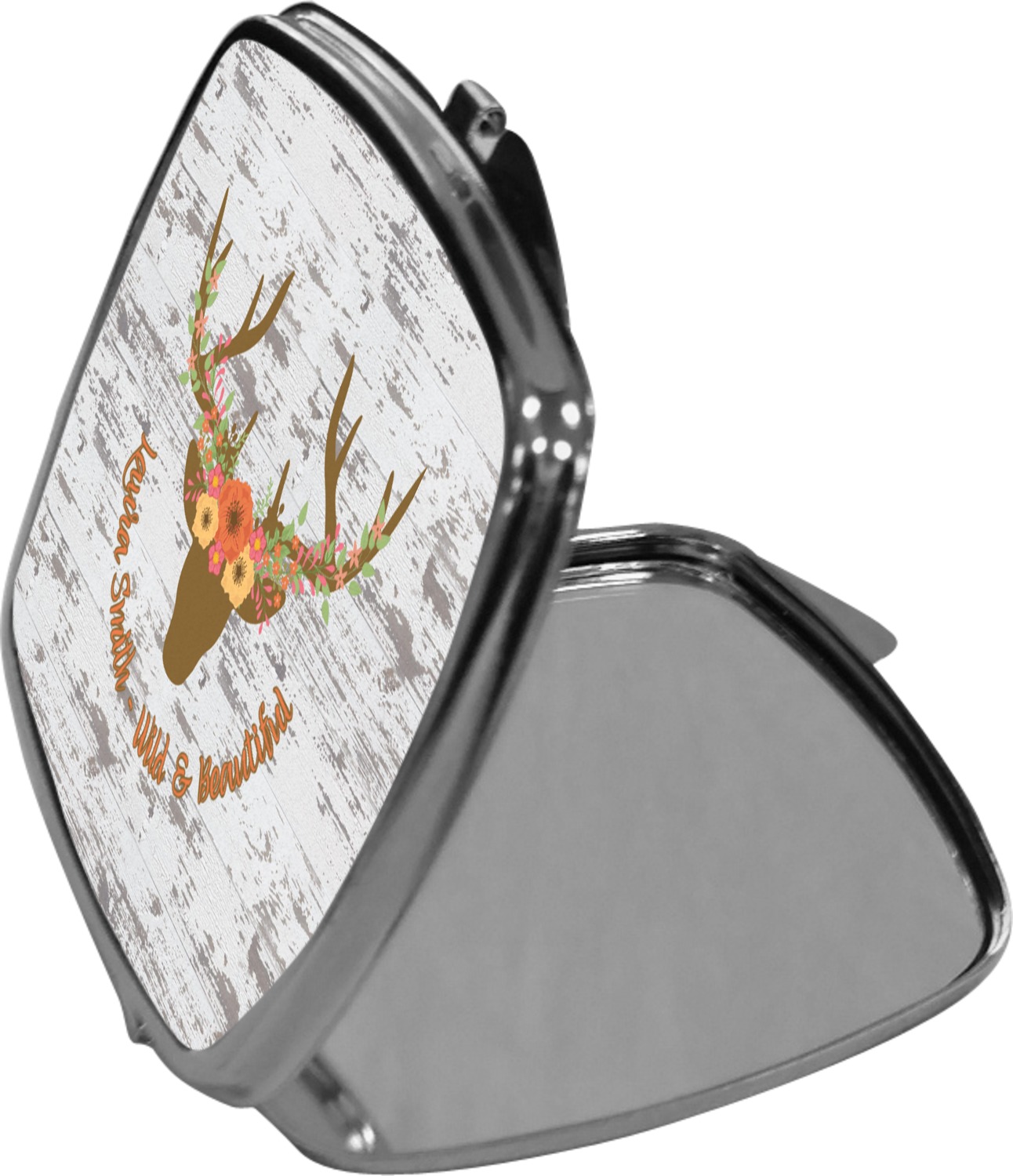 Every woman needs a compact mirror in her purse. Our personalized compact mirrors make a great bridesmaid gift or a mother's day gift, especially when you combine it with our personalized makeup bags. Get both in the same design or a coordinating design and have them both personalized.