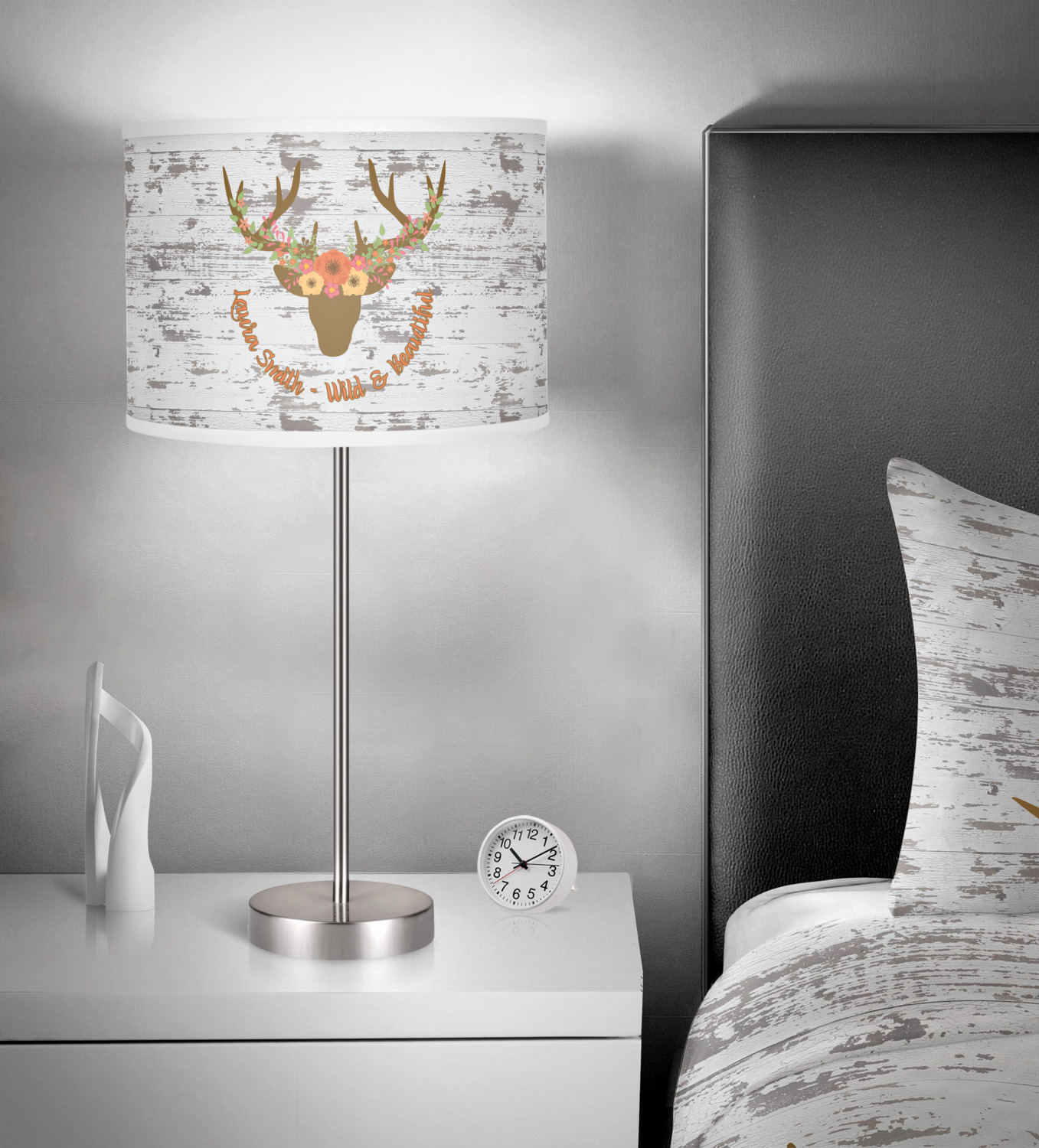 This design has a fun distressed shiplap background that is tones of white and grey. On top of this is an adorable deer illustration with flowers surrounding its antlers. Underneath is a curving area for personalization. Add your name or a fun saying. You will find brown, pink, peach, yellow, and green in this fun design.
