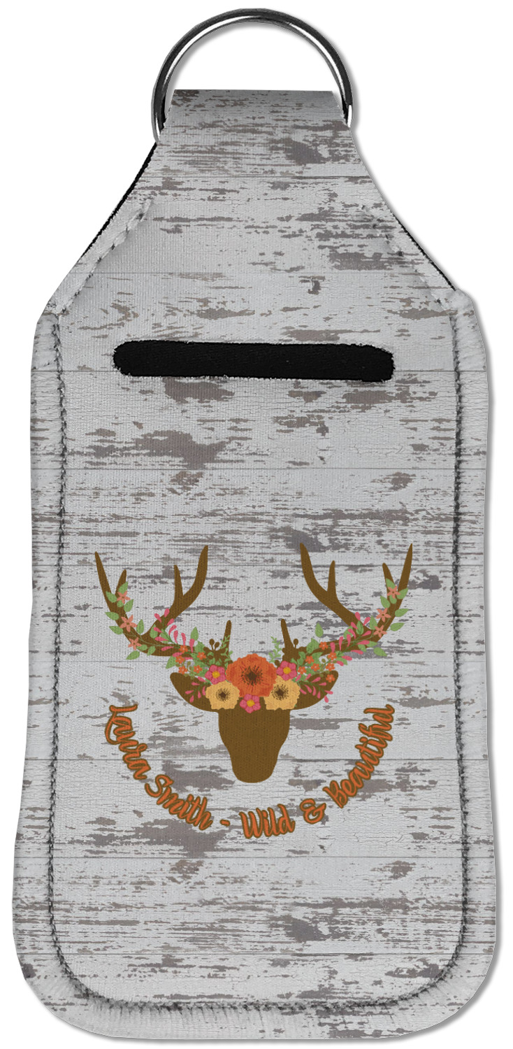 Each hand sanitizer holder comes with its own empty travel-sized, refillable hand sanitizer sure to fit snug in your customized sanitizer case! Our hand sanitizer cases are a durable, yet soft neoprene material sure to last any daily activities or travel agenda. Customize and personalize a hand sanitizer bottle holder with one of our two sizes - small (4.25" x 2.25") or large (5.5" x 2.5"). Each travel sanitizer holder comes with a keyring for attachment on bags, keys, or more!