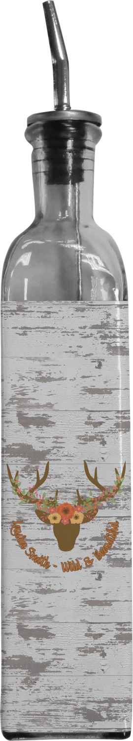 Made from recycled glass in Spain, these oil bottles have a classic, delicate look, and are accompanied by a metal spout for controlled pouring. Each bottle holds approximately 13 ounces and measures at 12 by 2 inches. We customize your glass oil bottle by applying your personalized design on the front and sides, using an adhesive. Our customizable stickers are made from high quality, gloss vinyl and are printed with waterproof, eco-solvent inks. These pieces are machine cut for accuracy and symmetry. The result is a robust, waterproof, adhesive decal that will not fade or deteriorate with time.