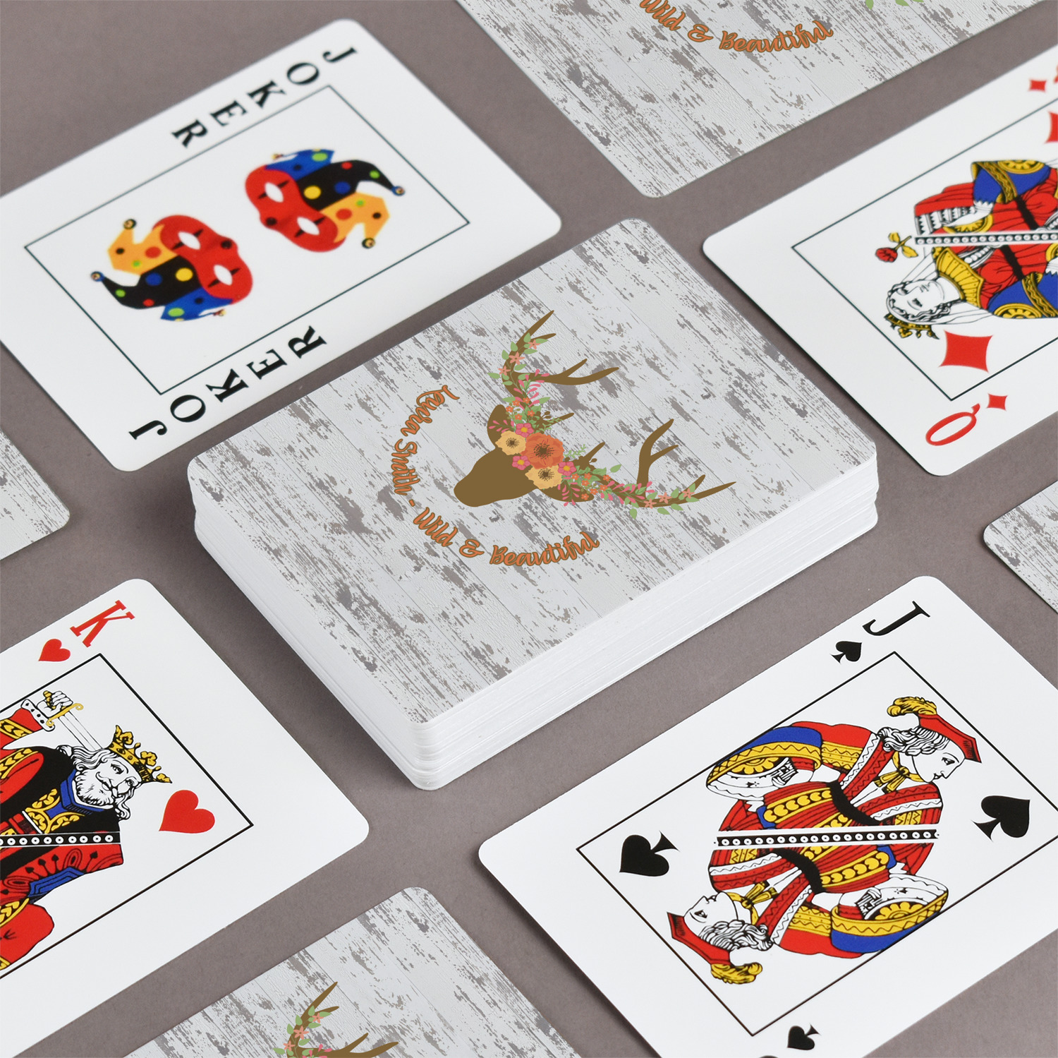 Our playing cards are perfect for family game nights or poker nights. A deck of customized playing cards ups the level of fun & entertainment to your game or poker nights. Imagine playing cards customized to match the theme of your game room, or game night, or that special event, or occasion with gambling tables!