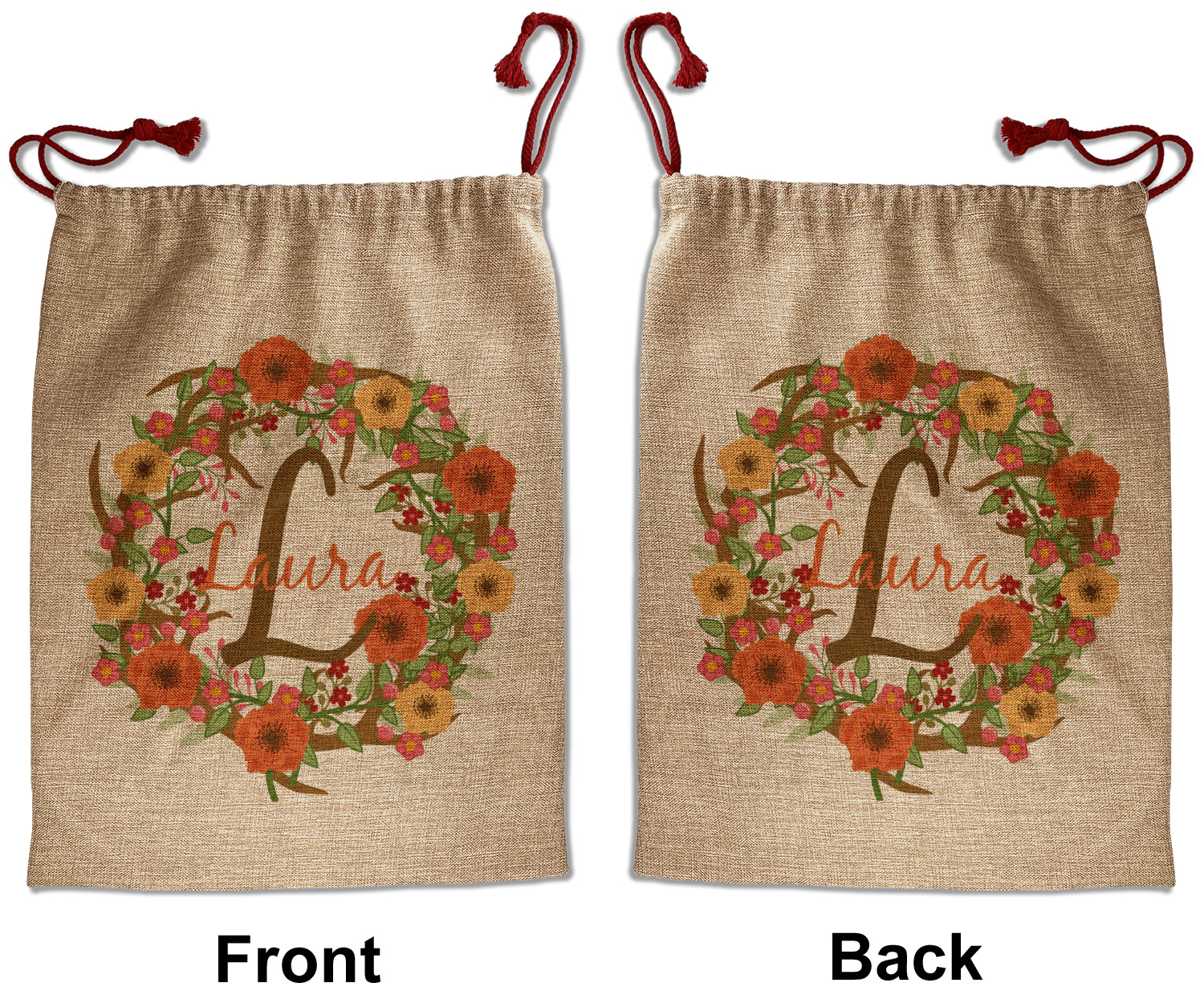 Our Santa sacks print your design on the burlap material giving it a nice rustic, natural design! The burlap material is also machine washable and wrinkle-free, so feel free to fold and store out Santa bags until the next time you need it! Secure your gifts with our red accent drawstring ties at the top of the sack so the mystery of your gift stays a surprise until Christmas day. We offer two types of printing- one side partial print or double-sided partial printing. Design and personalize your own Santa sack in time for the holidays!