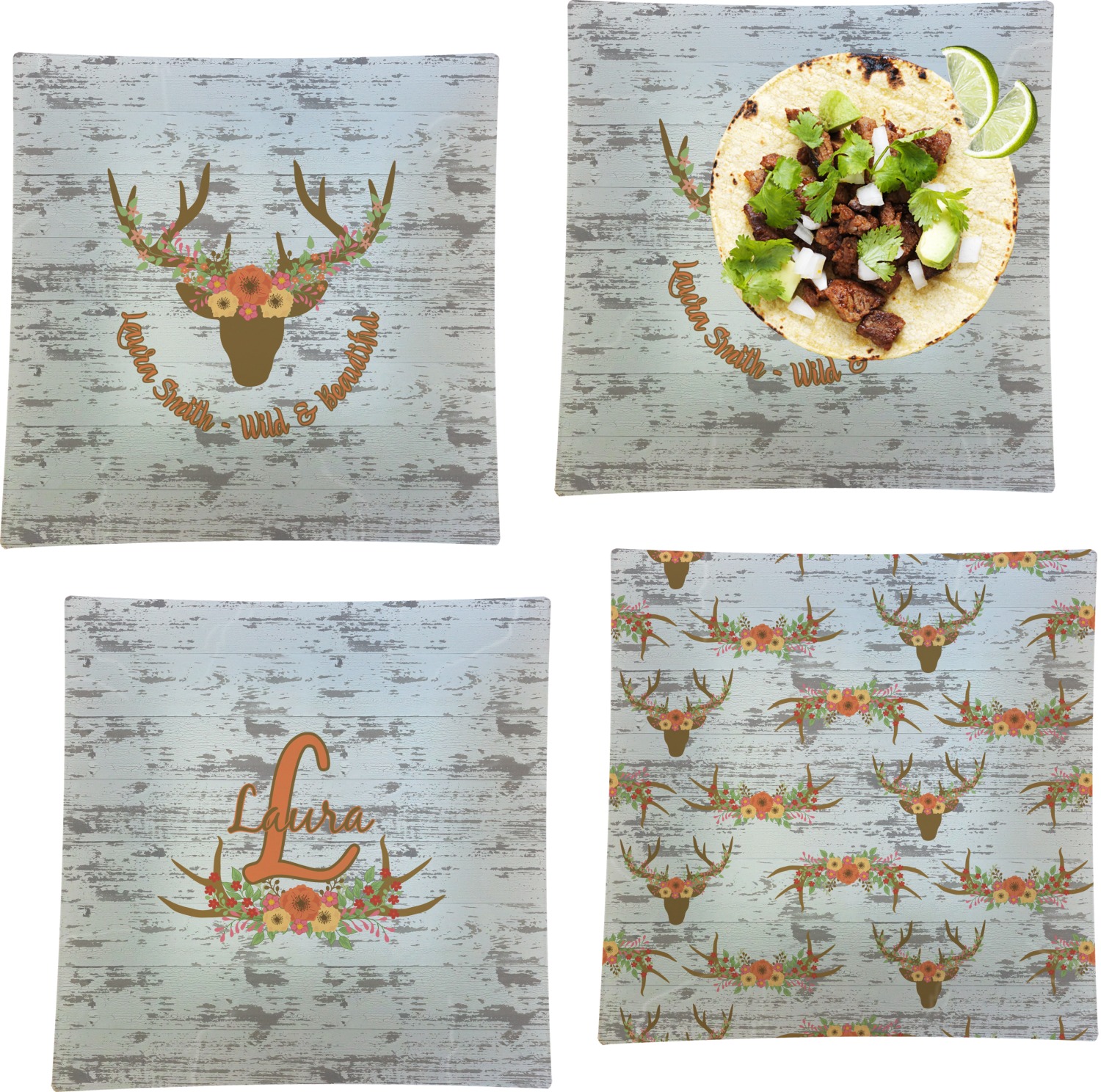 Farmhouse Designs for Glass Square Lunch / Dinner Plates 9.5" - Set of 4