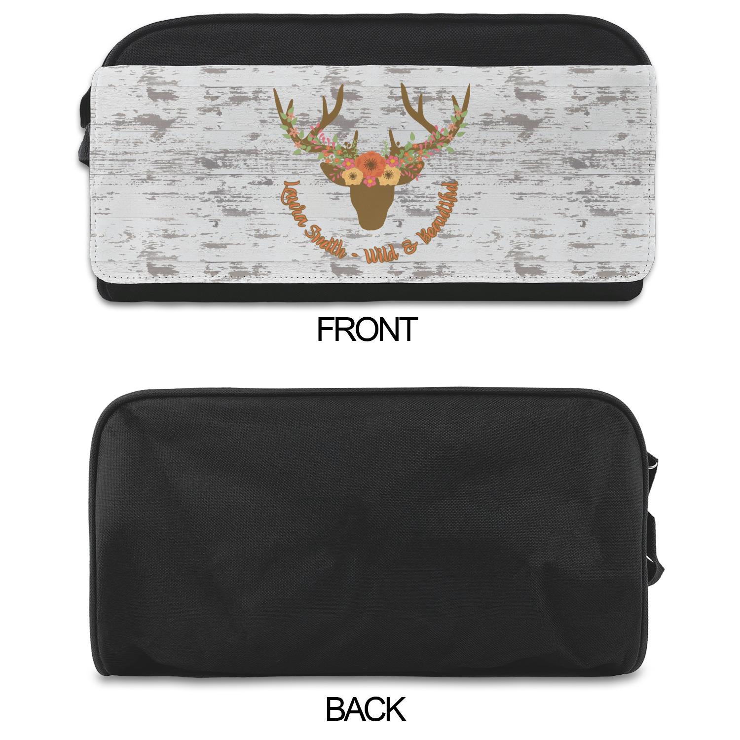 This design has a fun distressed shiplap background that is tones of white and grey. On top of this is an adorable deer illustration with flowers surrounding its antlers. Underneath is a curving area for personalization. Add your name or a fun saying. You will find brown, pink, peach, yellow, and green in this fun design.