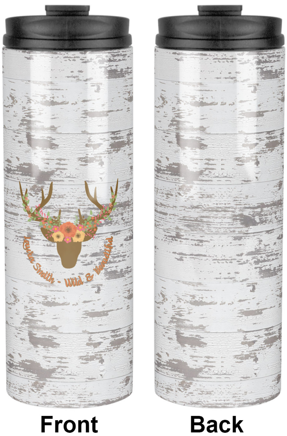 Sip your favorite drink on the go with your own custom stainless steel tumbler! Our slim cylinder shape is perfect for holding your drink in hand, in your purse, or in your backpack! This sleek and modern tumbler is a perfect gift for coffee and tea lovers keeping their drinks just the right temperature throughout the day! We offer two sizes, a 16 oz. or 20 oz., to personalize. Browse and customize or design or create your own with our online design studio!