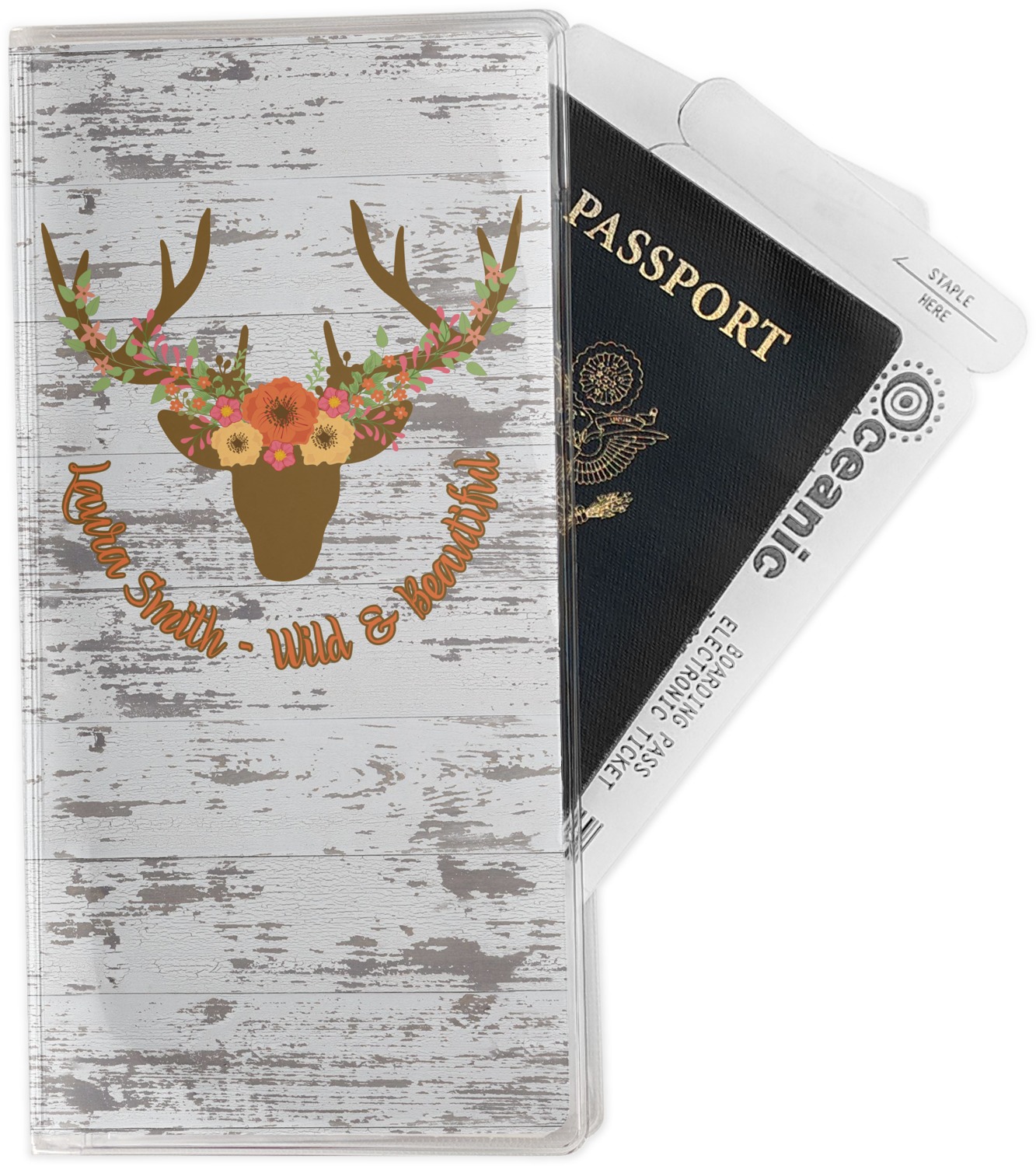 This document holder is really sturdy and has your personalized design inserted right behind all of your nifty pockets, so you can see it on the front and back covers. There are two large pockets and two shorter pockets inside. The larger pockets are tall enough to keep your boarding pass nice and straight. The smaller pockets (on top of the large pockets) are large enough to fit your passport, credit card, or ID.