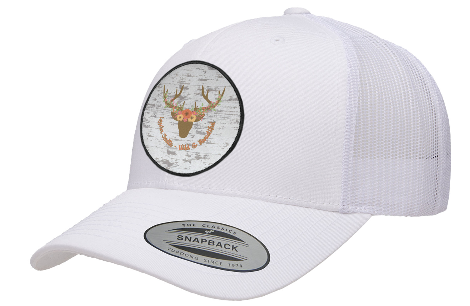 This design has a fun distressed shiplap background that is tones of white and grey. On top of this is an adorable deer illustration with flowers surrounding its antlers. Underneath is a curving area for personalization. Add your name or a fun saying. You will find brown, pink, peach, yellow, and green in this fun design.