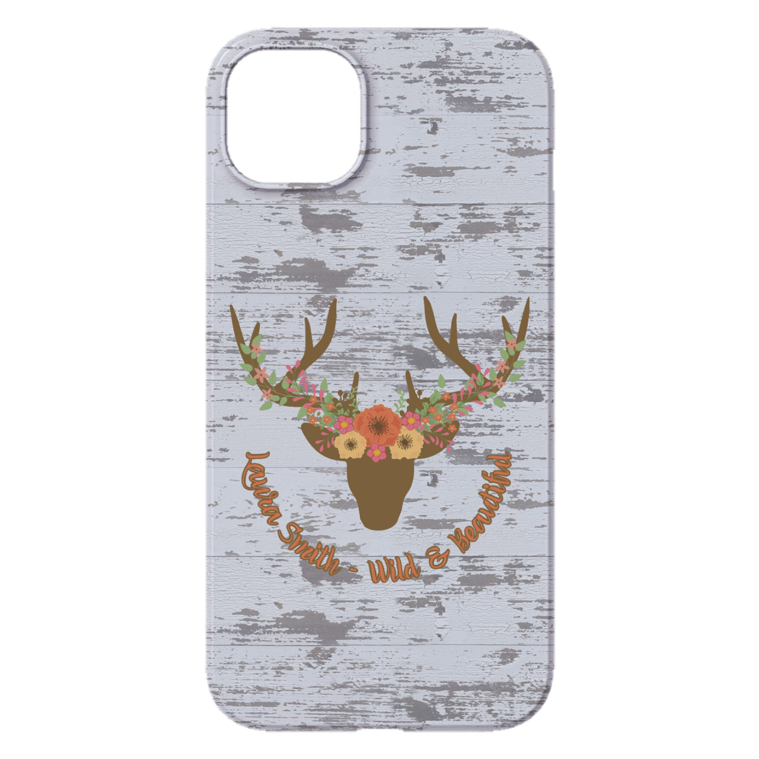 This design has a fun distressed shiplap background that is tones of white and grey. On top of this is an adorable deer illustration with flowers surrounding its antlers. Underneath is a curving area for personalization. Add your name or a fun saying. You will find brown, pink, peach, yellow, and green in this fun design.