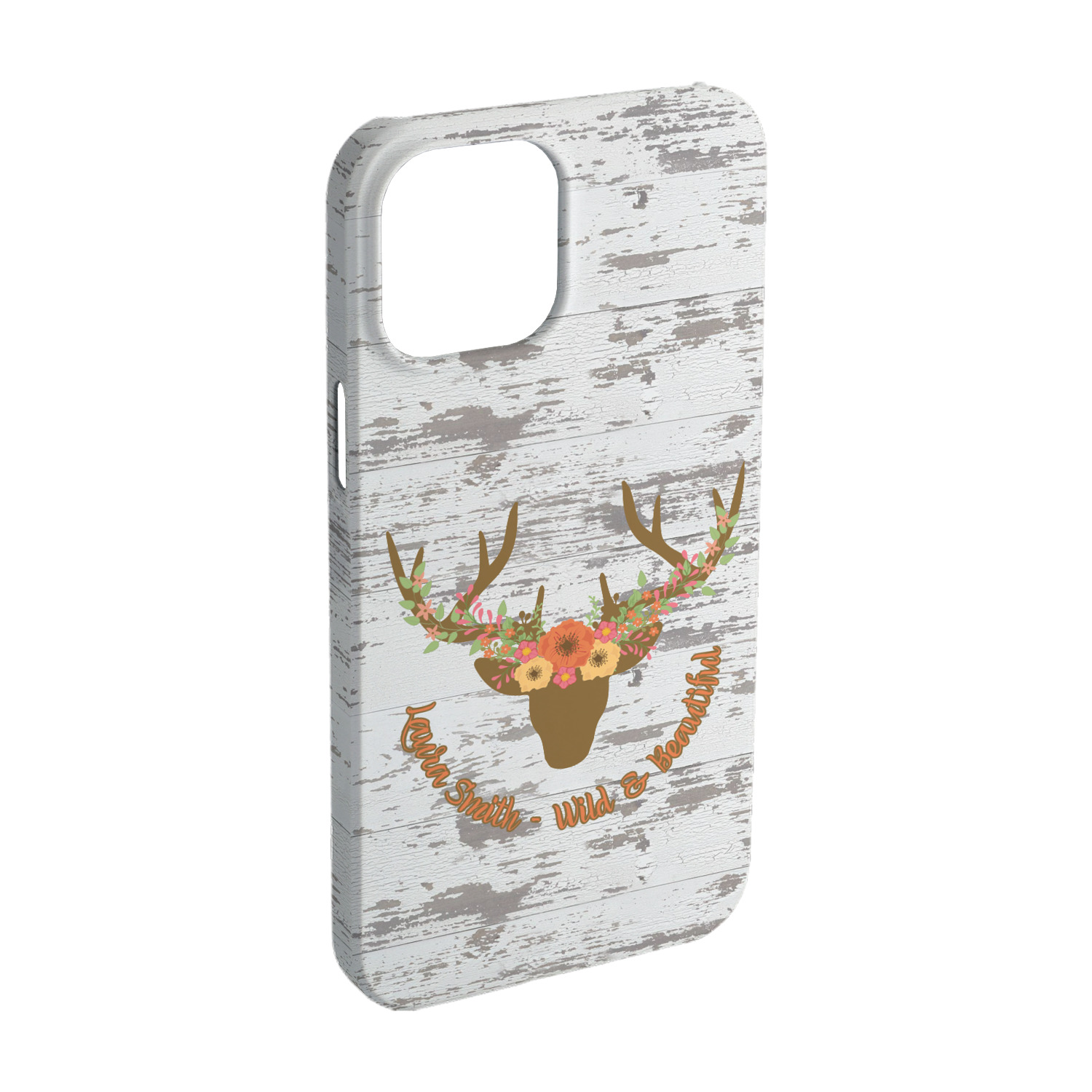 This design has a fun distressed shiplap background that is tones of white and grey. On top of this is an adorable deer illustration with flowers surrounding its antlers. Underneath is a curving area for personalization. Add your name or a fun saying. You will find brown, pink, peach, yellow, and green in this fun design.