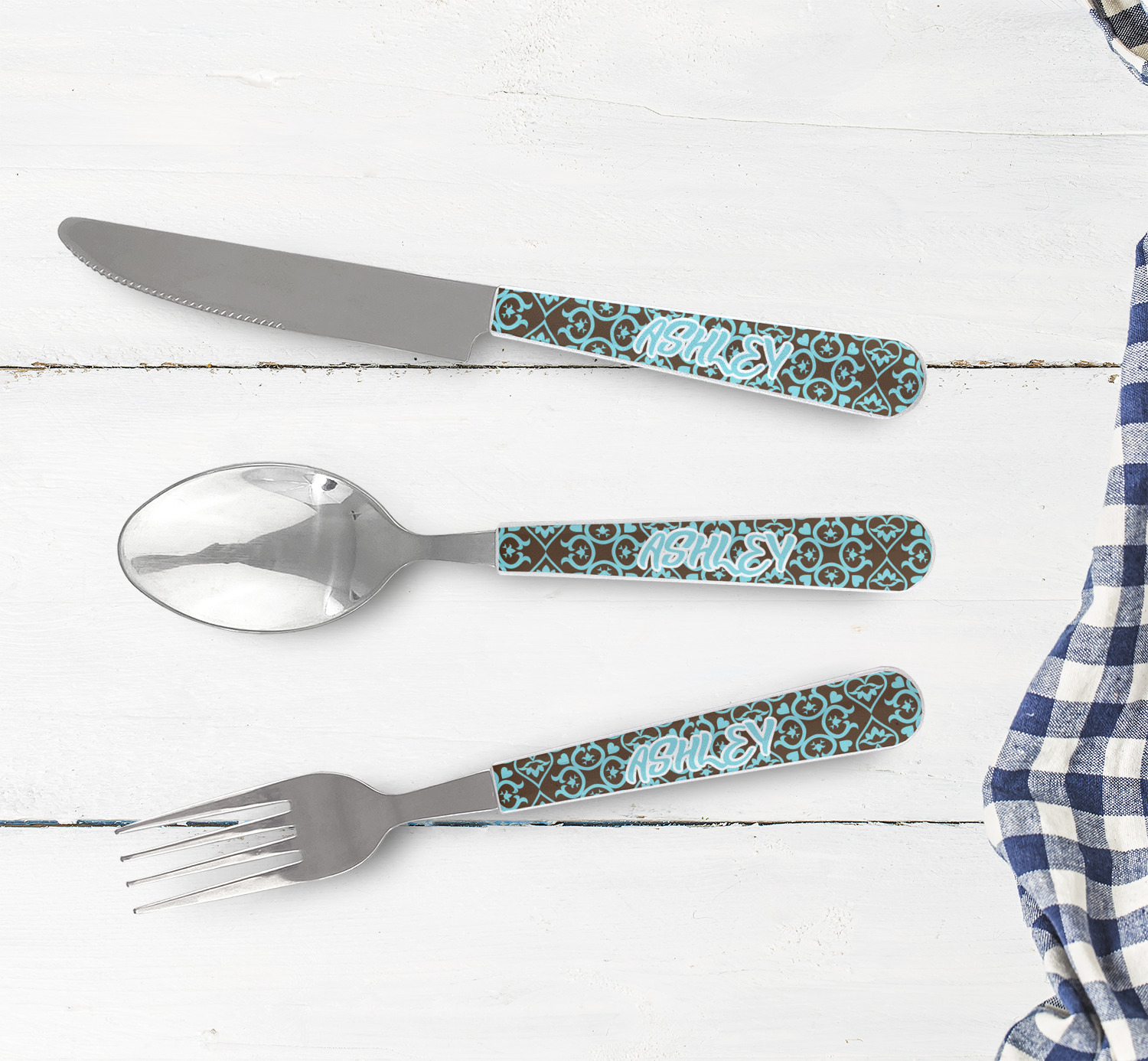 One of those items we all use on a daily basis and never give it much thought - cutlery. Having your own customized set of cutlery adds that special touch. A great addition to our custom plates and drinking pint glasses, this flatware set can be made in the same patterns to match.