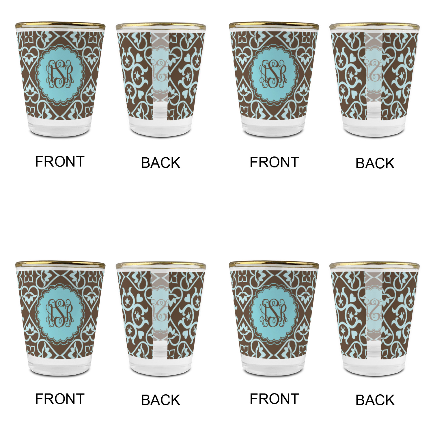 Shape + Symbol Designs for Glass Shot Glasses - 1.5 oz - with Gold Rim - Set of 4