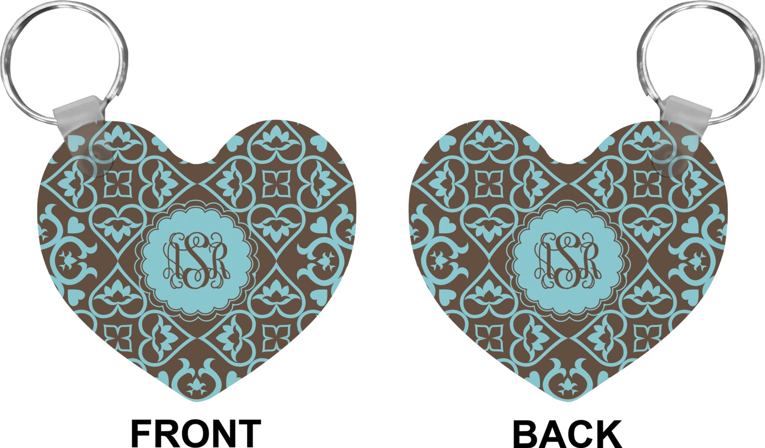 Our personalized keychains attach to the included metal, split key ring with a plastic, removable snap. Since a metal ring is included with your purchase, you have the liberty to keep your keys together on the ring, with or without your unique keychain. We offer this keychain in three different shapes: circle, heart, or diamond. We print your personalized design(s) on both sides of the key chain, and the surface has a glossy, reflective finish that only emphasizes your design. Each keychain is approximately 2.25 by 2.25 inches.