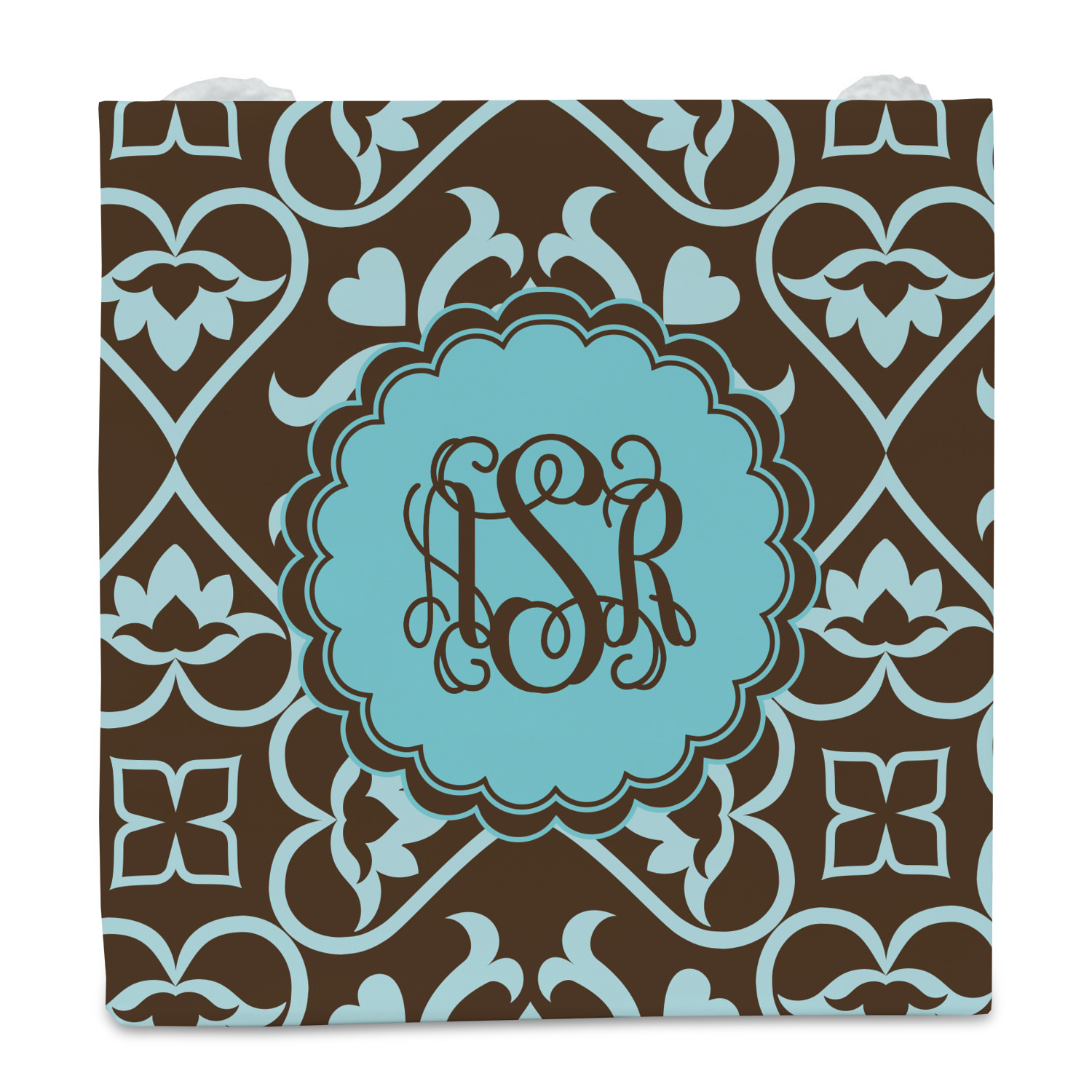 A blue scalloped label highlights a classic personalized monogram or personalization of your choice.