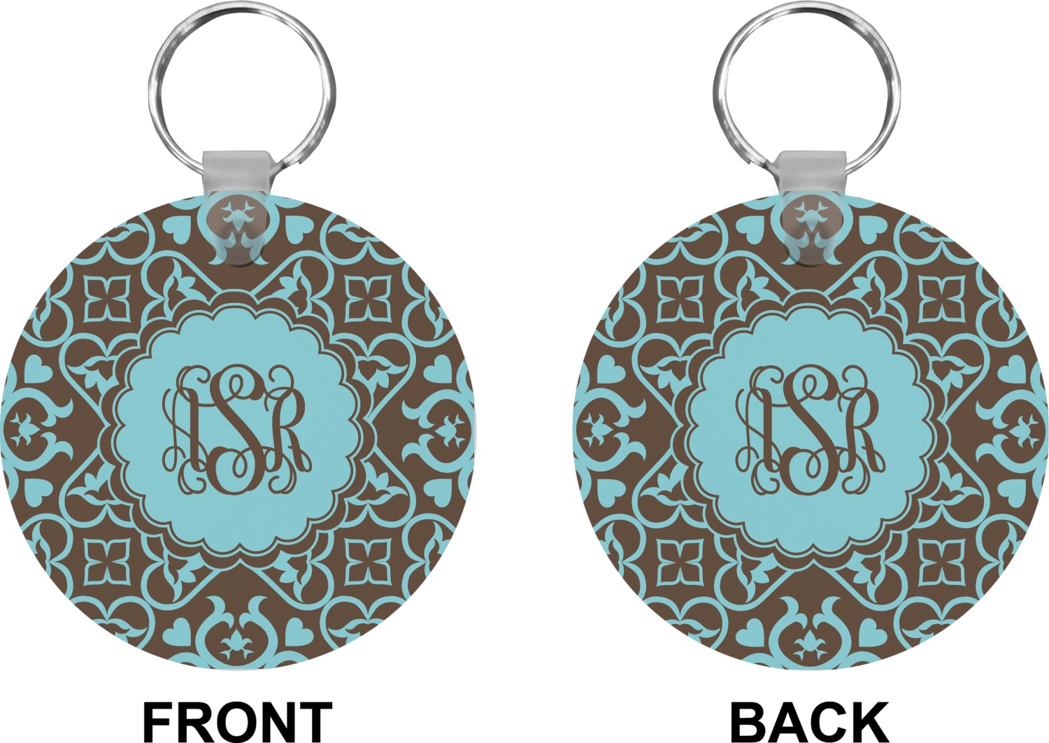 Our personalized keychains attach to the included metal, split key ring with a plastic, removable snap. Since a metal ring is included with your purchase, you have the liberty to keep your keys together on the ring, with or without your unique keychain. We offer this keychain in three different shapes: circle, heart, or diamond. We print your personalized design(s) on both sides of the key chain, and the surface has a glossy, reflective finish that only emphasizes your design. Each keychain is approximately 2.25 by 2.25 inches.