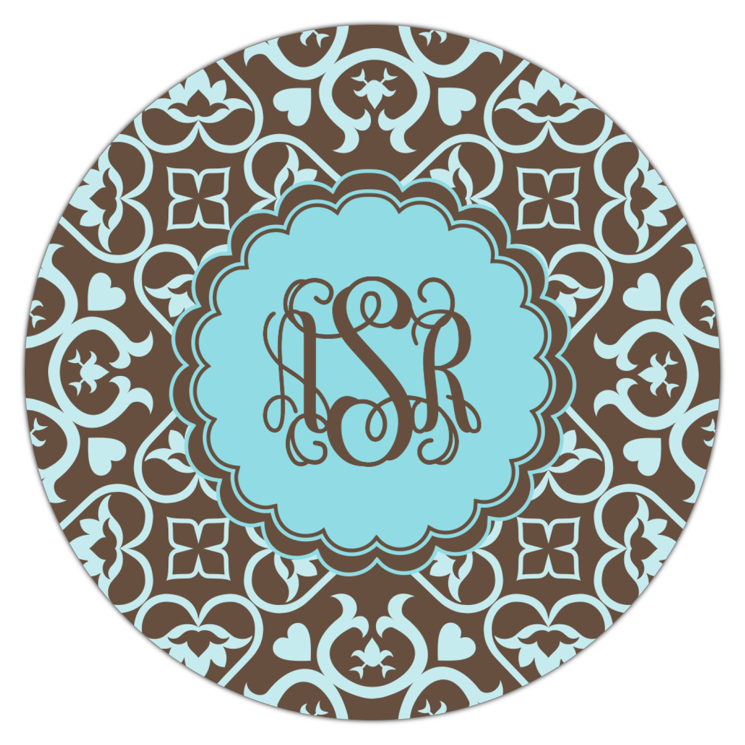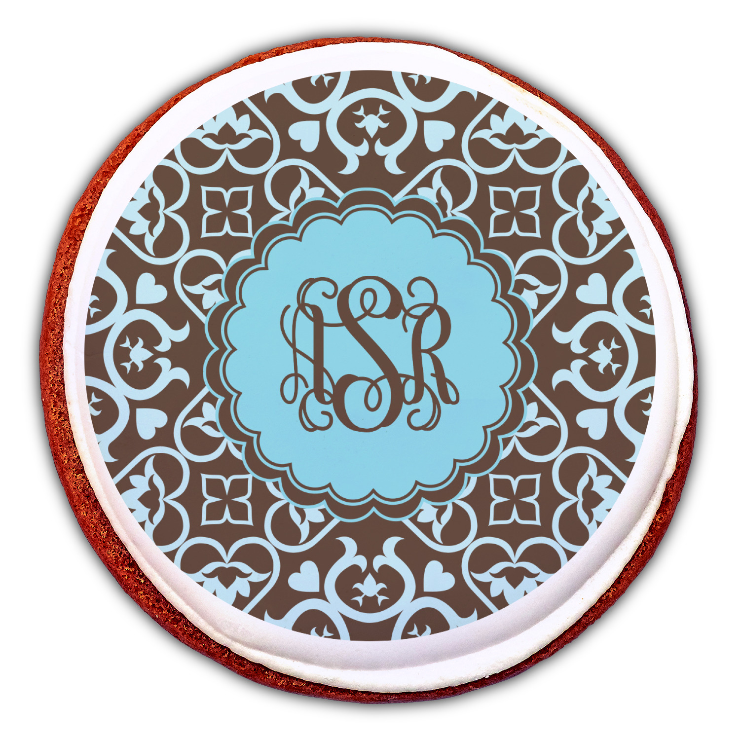 A blue scalloped label highlights a classic personalized monogram or personalization of your choice.