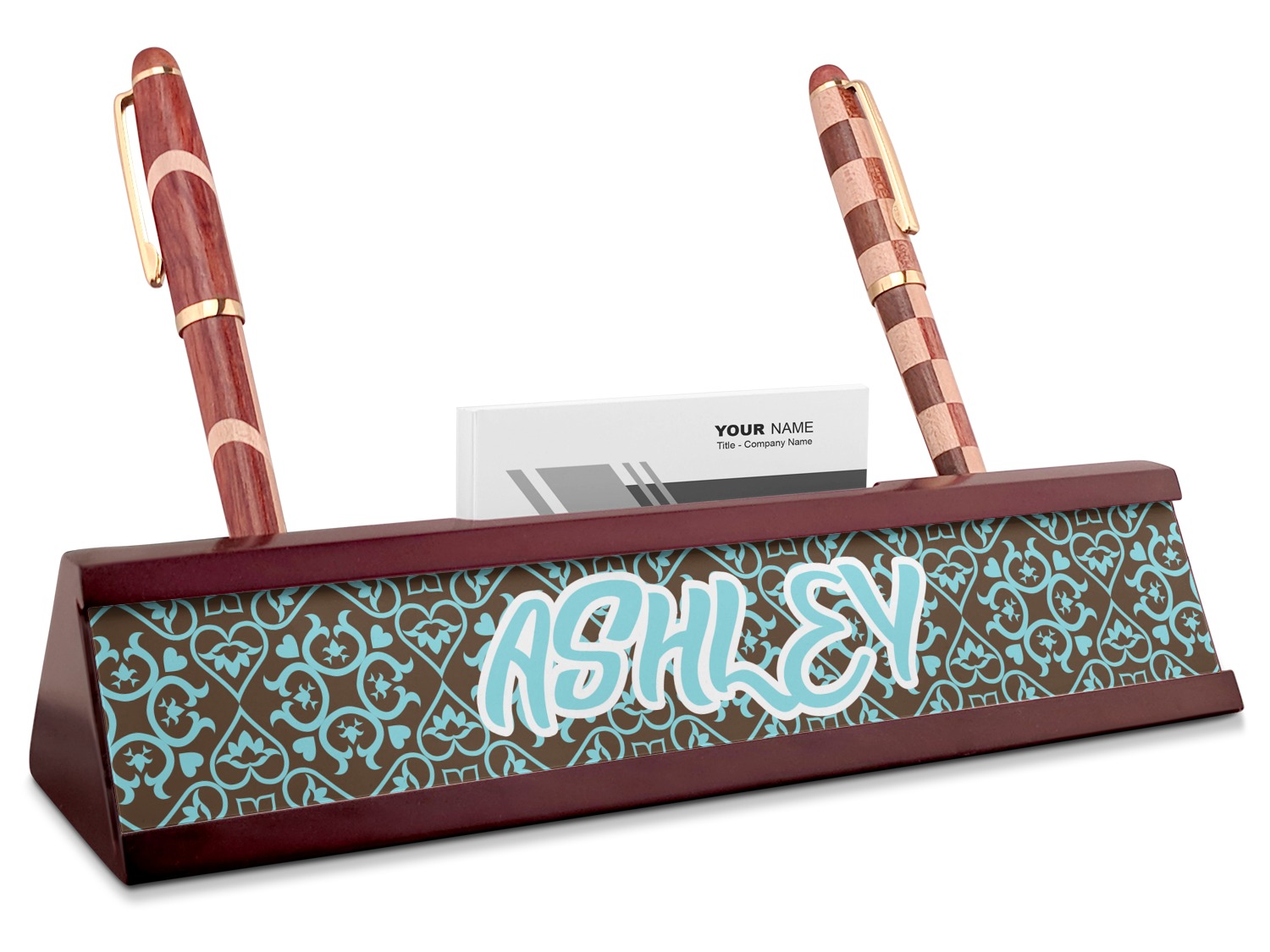 Shape + Symbol Designs for Red Mahogany Nameplates with Business Card Holder