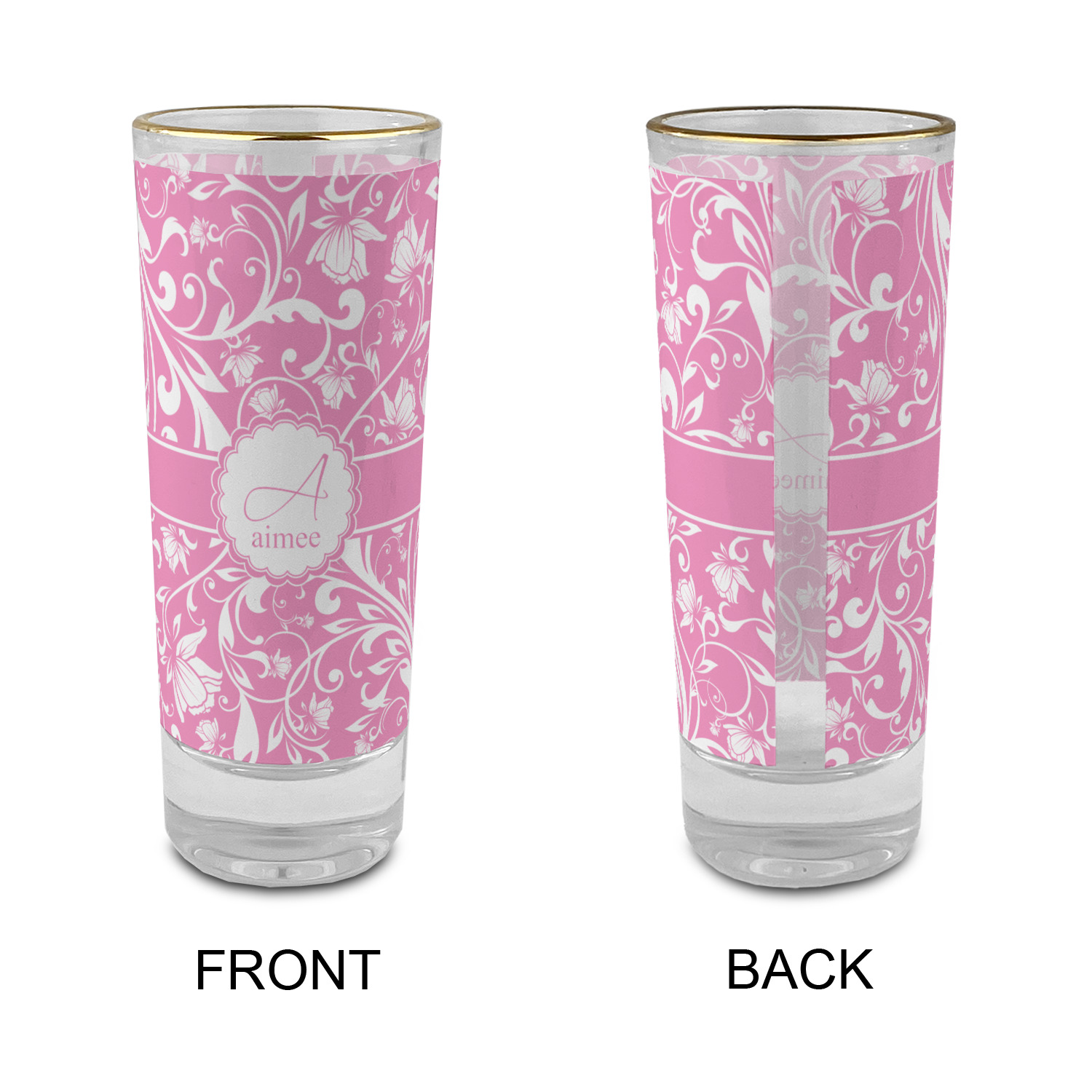These glass shooter glasses are printed in full color with the design of your choice. These are a tall shooter 2 oz size and stand 4" tall. The print is a full wrap design to boldly display your personalization.