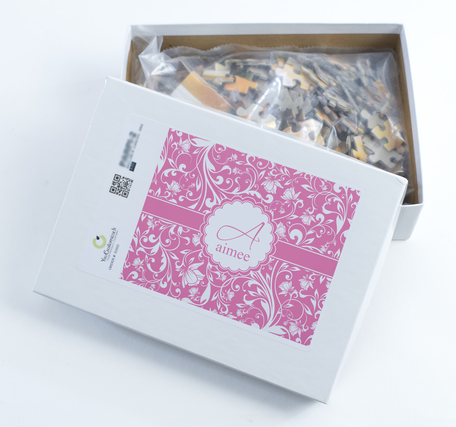 We print our puzzles on thick white chipboard in vibrant colors, then laminate the chipboard and die cut your puzzle. Your jigsaw puzzle is shipped to you in a box with the image of the puzzle on the box.
