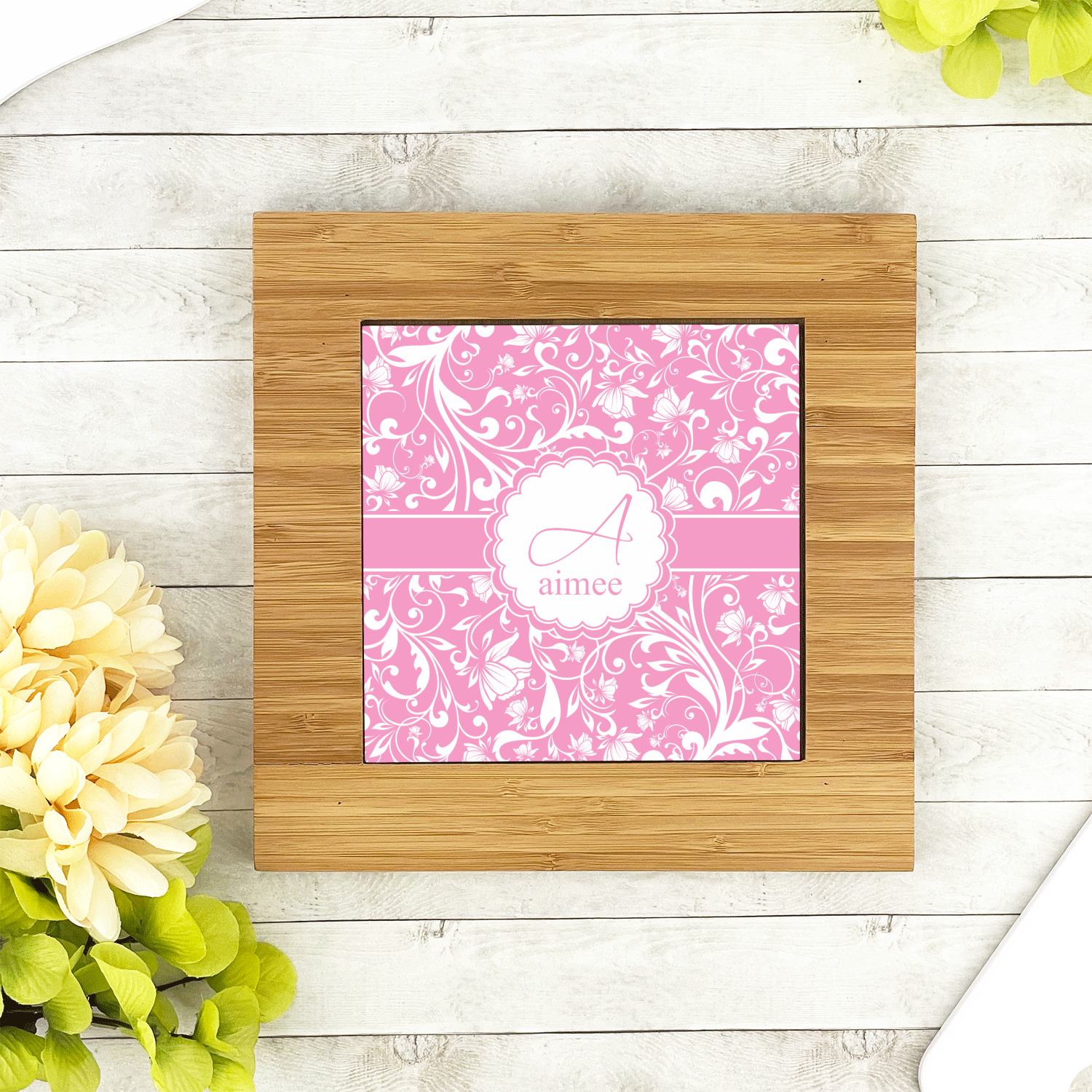 This gorgeous floral pattern combines the classic soft baby pink and white. The design has a classic ribbon in the baby pink trimmed in white. The decorative scalloped label is also in the soft baby pink and white. Add an initial and a name for that personal touch to pull the entire design together.