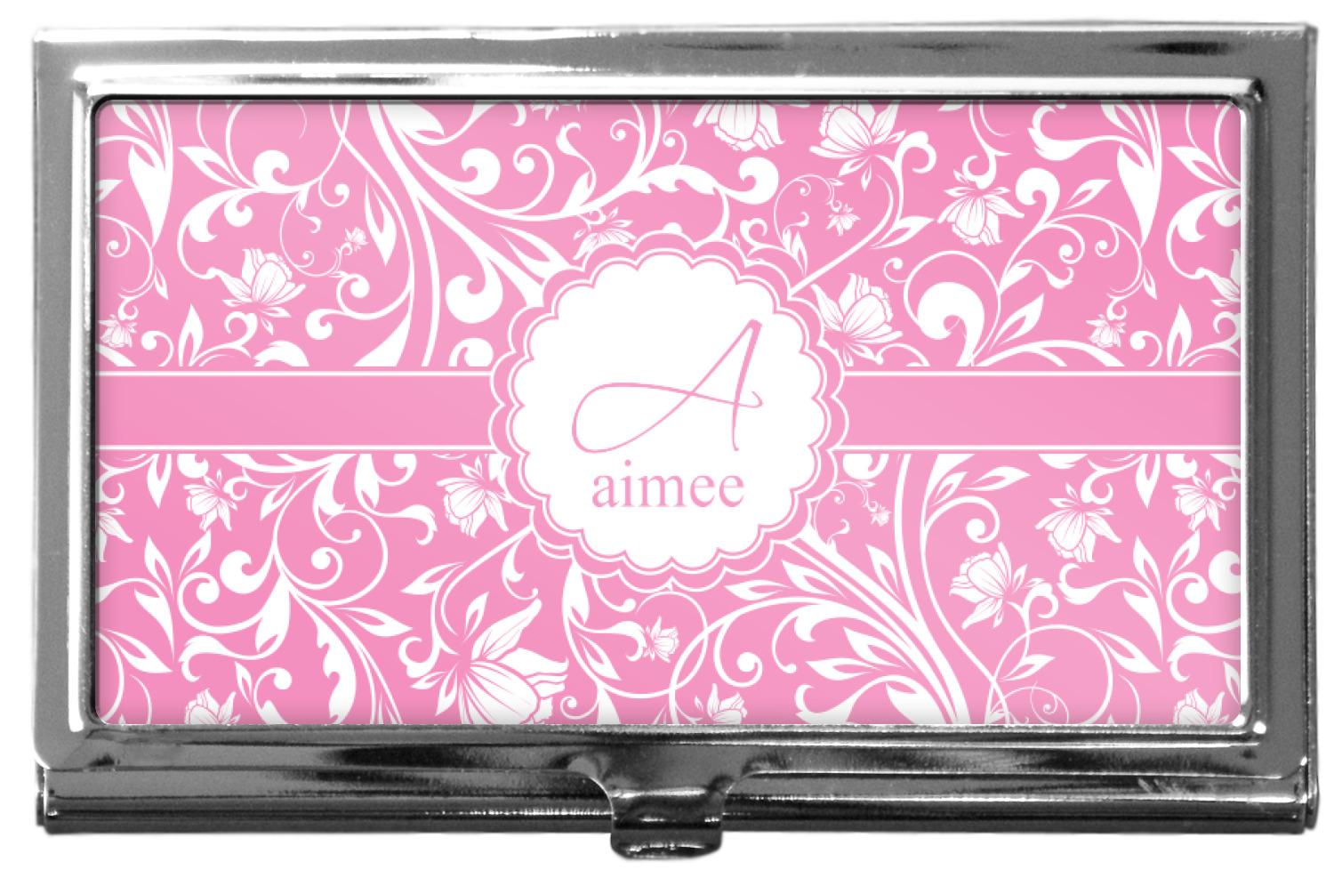 Our personalized business card holders are built from a robust, stainless steel and shaped into a sleek rectangle. At 3.75" x 2.5", and 0.25" thick, this nifty accessory holds up to 12 to 15 business cards, depending on the thickness of the cards themselves. Regardless, the skinny style makes it the perfect fit for your purse or pocket. The lid of your custom business card holder features a protruding tab to open and close your holder with a snap. To protect the mint condition of your cards, the interior of this metal business card holder is lined with a soft, felt fabric. We print your personalized design across the face of the lid.