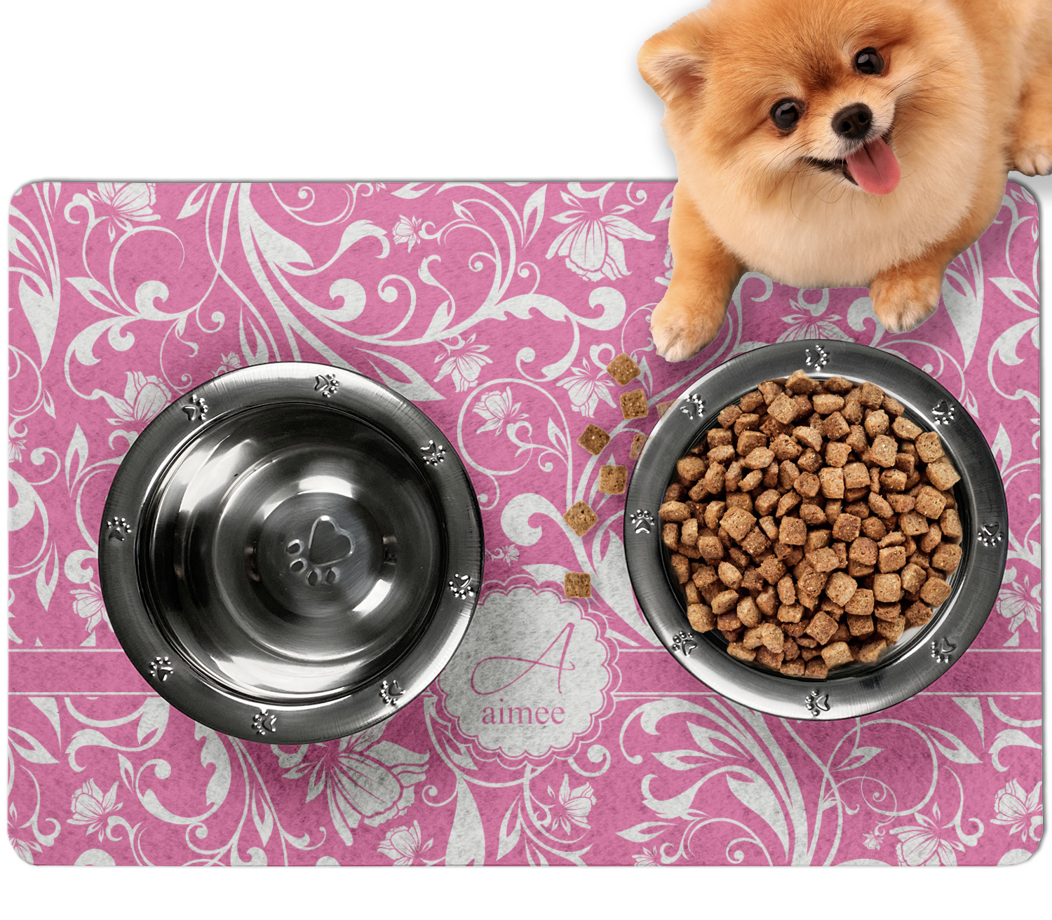 Frustrated with the mess your pets make during mealtime? Personalize a multi-functional dog food mat that prevents spills from reaching your floors, while also incorporating some cute decor to your dog's eating area!