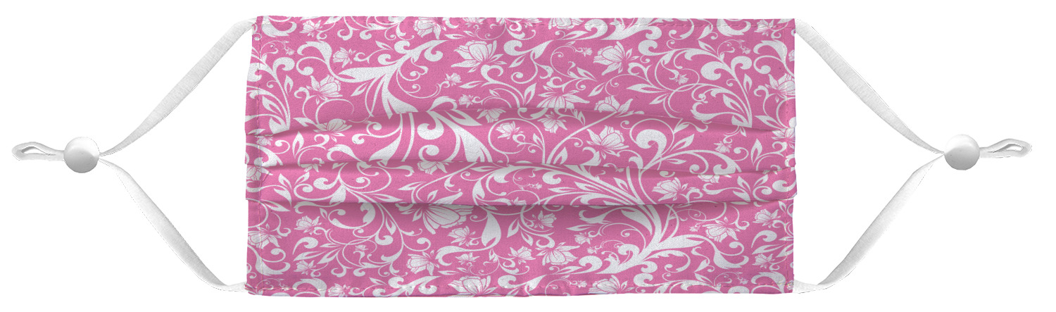 These fun face masks are 7" wide and 3.5" high. They feature pleats, adjustable ear loops, and are made with two layers of fabric. The top layer where your design is printed is a breathable polyester sheeting, while the inside layer is a soft microfiber polyester