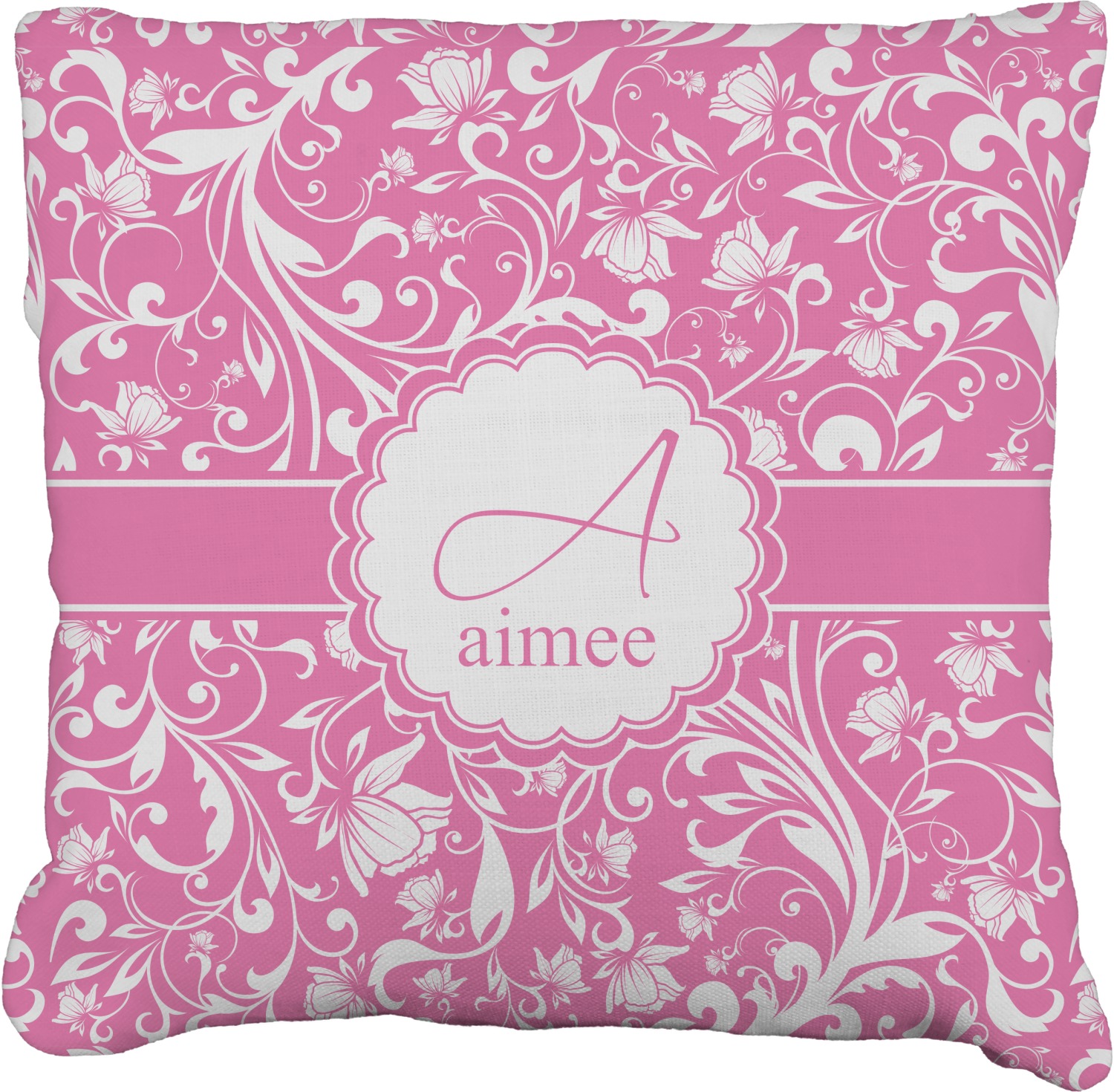 This gorgeous floral pattern combines the classic soft baby pink and white. The design has a classic ribbon in the baby pink trimmed in white. The decorative scalloped label is also in the soft baby pink and white. Add an initial and a name for that personal touch to pull the entire design together.