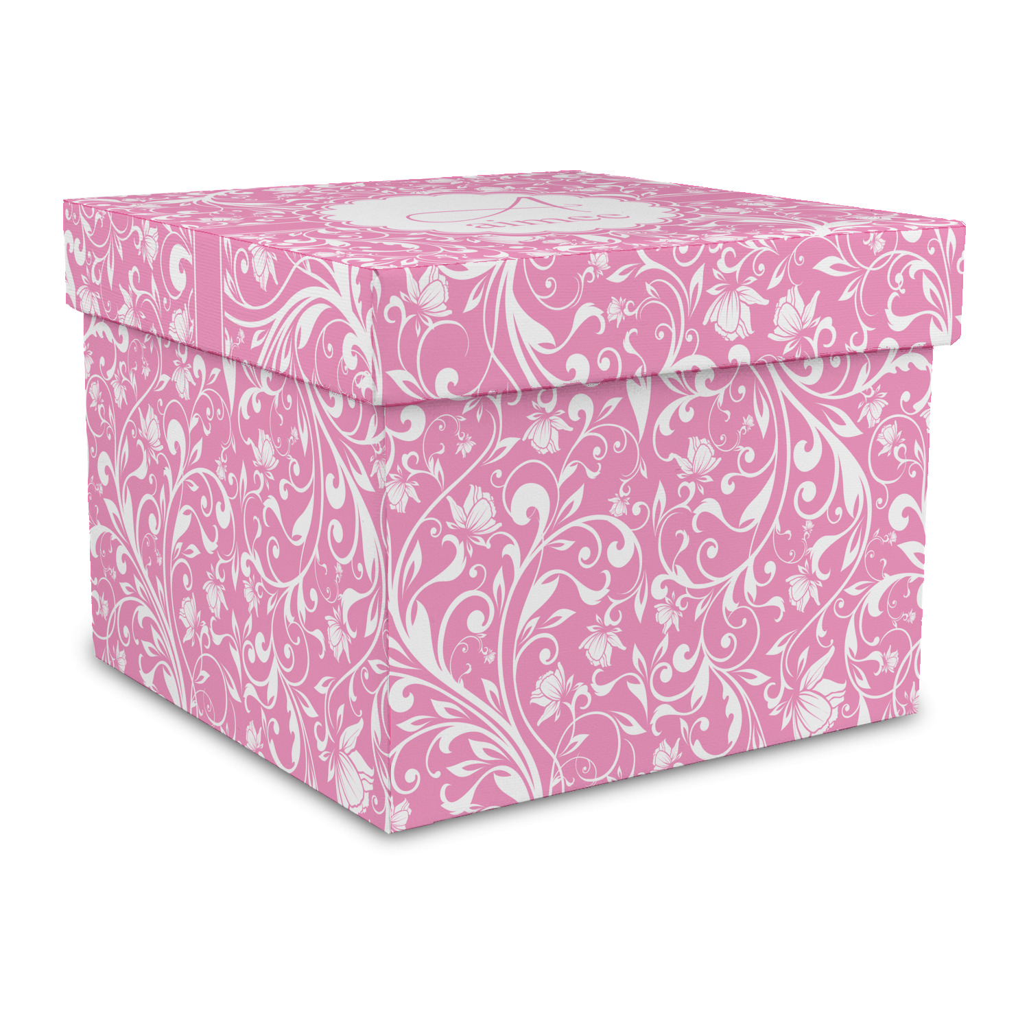 This gorgeous floral pattern combines the classic soft baby pink and white. The design has a classic ribbon in the baby pink trimmed in white. The decorative scalloped label is also in the soft baby pink and white. Add an initial and a name for that personal touch to pull the entire design together.