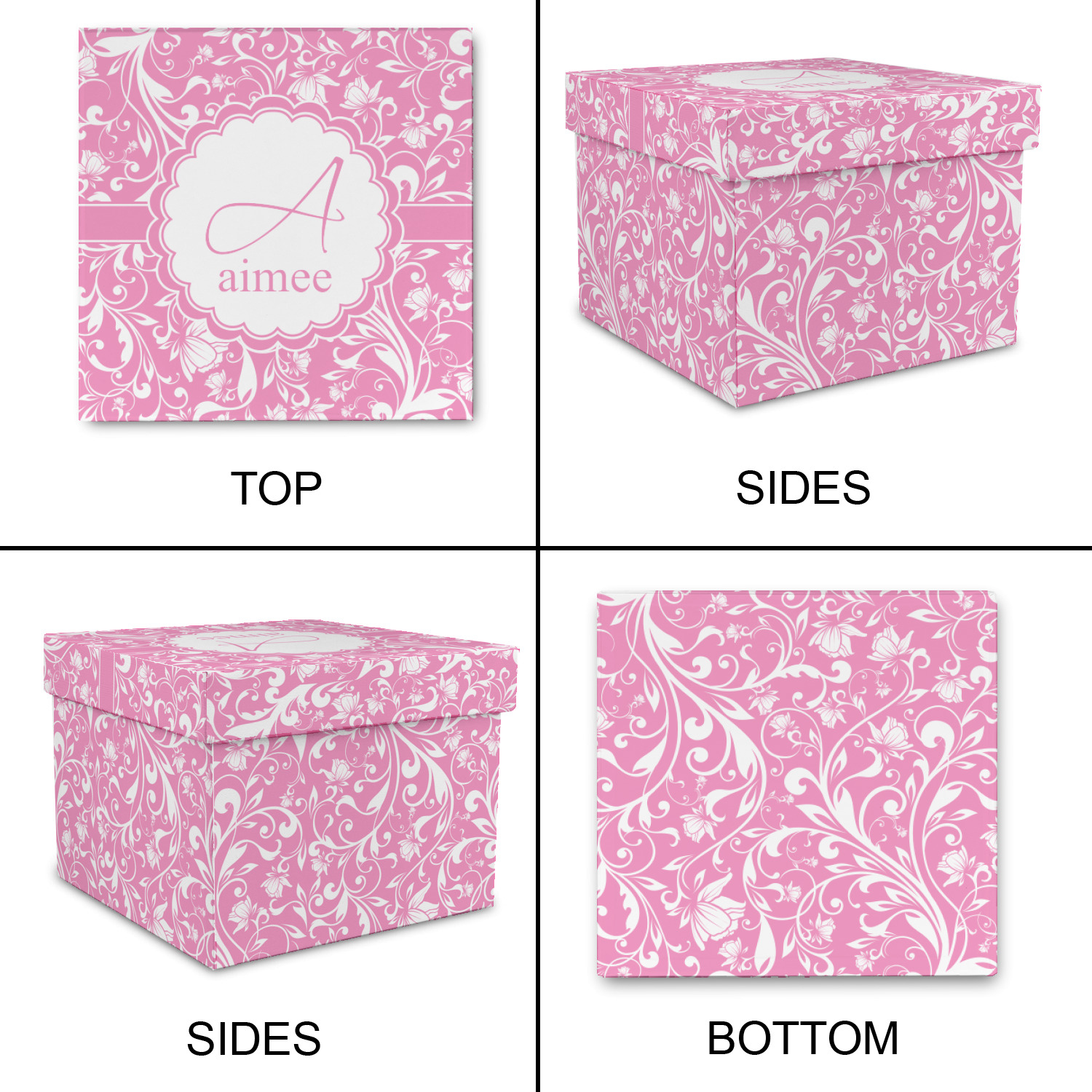 This gorgeous floral pattern combines the classic soft baby pink and white. The design has a classic ribbon in the baby pink trimmed in white. The decorative scalloped label is also in the soft baby pink and white. Add an initial and a name for that personal touch to pull the entire design together.