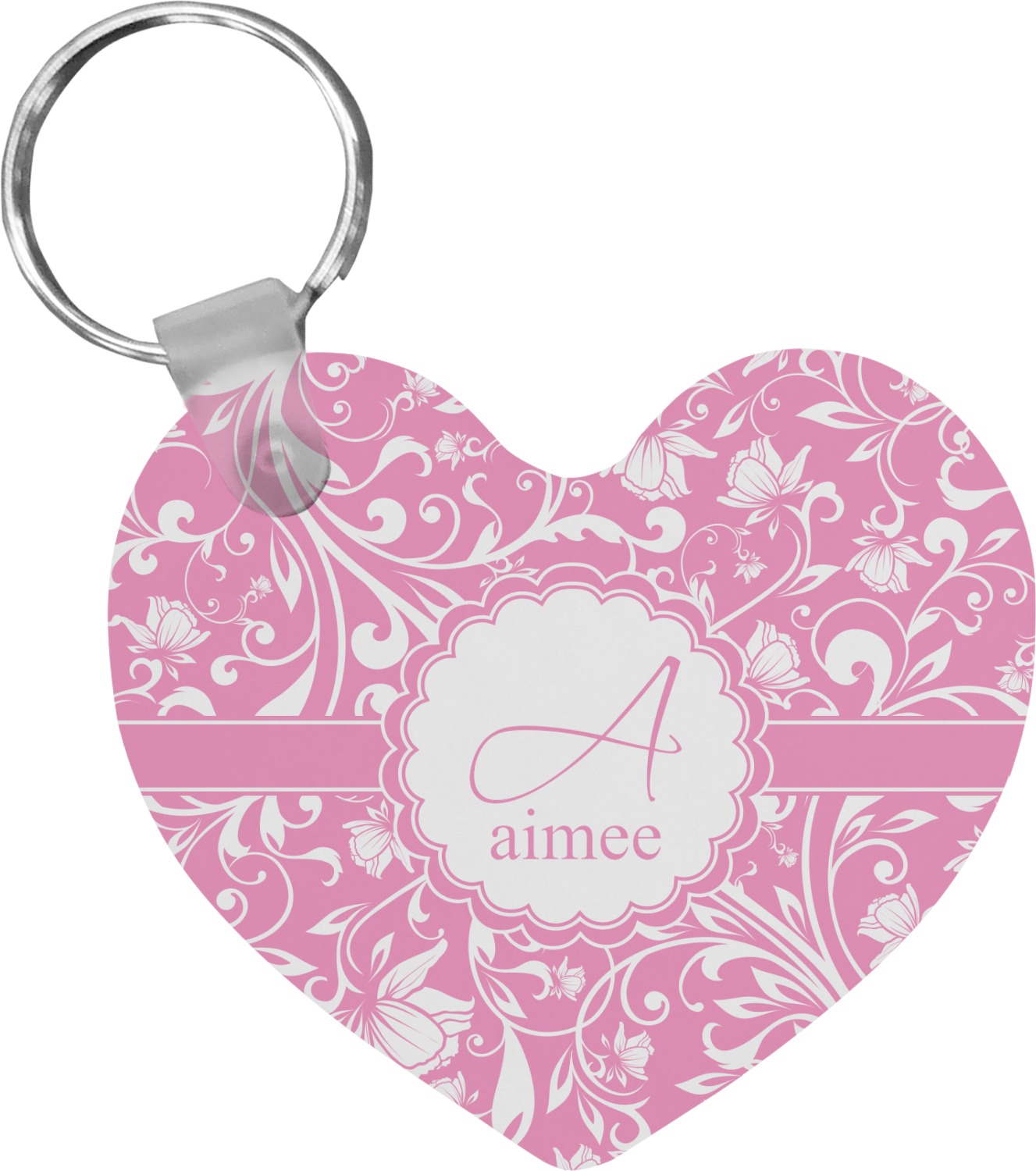 Our personalized keychains attach to the included metal, split key ring with a plastic, removable snap. Since a metal ring is included with your purchase, you have the liberty to keep your keys together on the ring, with or without your unique keychain. We offer this keychain in three different shapes: circle, heart, or diamond. We print your personalized design(s) on both sides of the key chain, and the surface has a glossy, reflective finish that only emphasizes your design. Each keychain is approximately 2.25 by 2.25 inches.