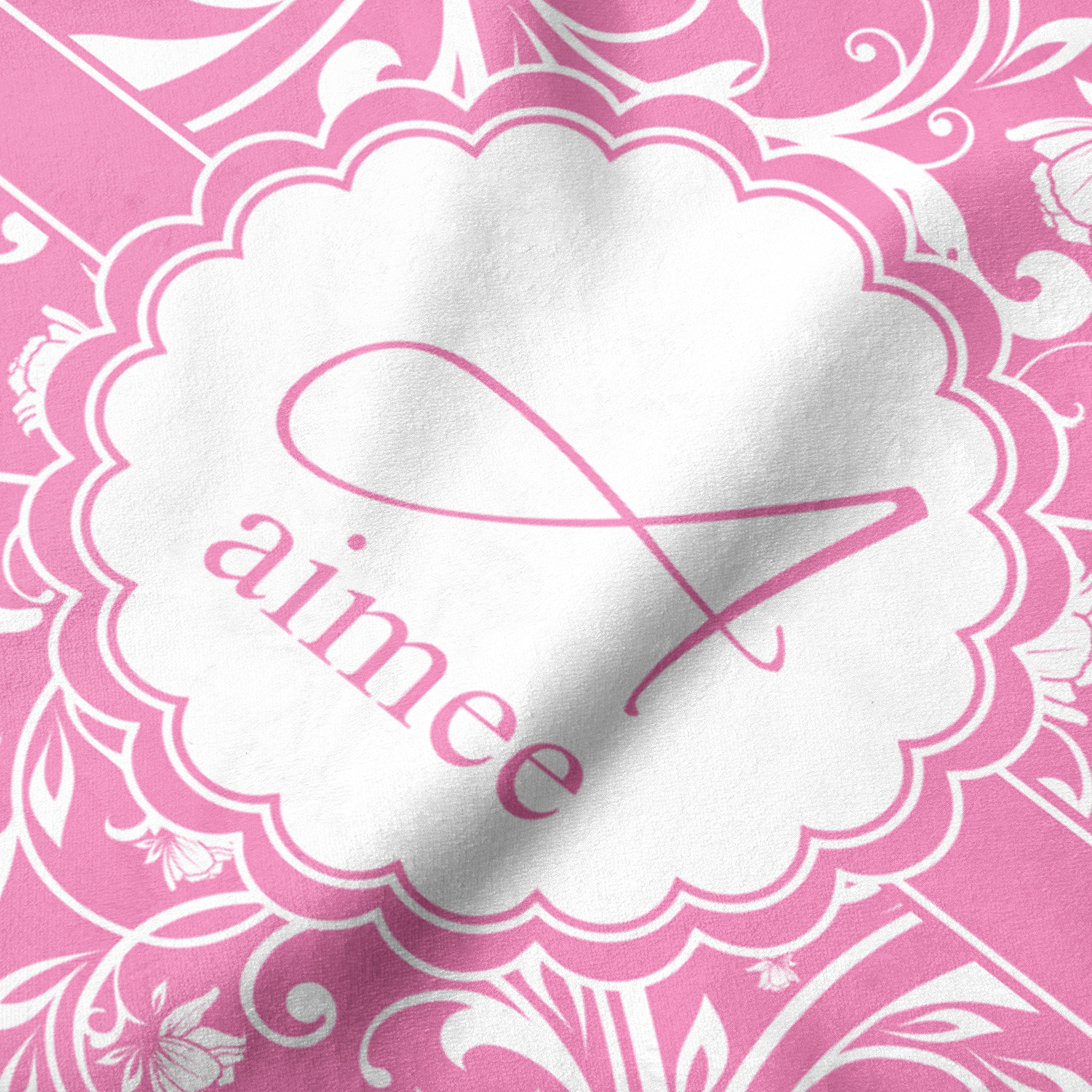 This gorgeous floral pattern combines the classic soft baby pink and white. The design has a classic ribbon in the baby pink trimmed in white. The decorative scalloped label is also in the soft baby pink and white. Add an initial and a name for that personal touch to pull the entire design together.