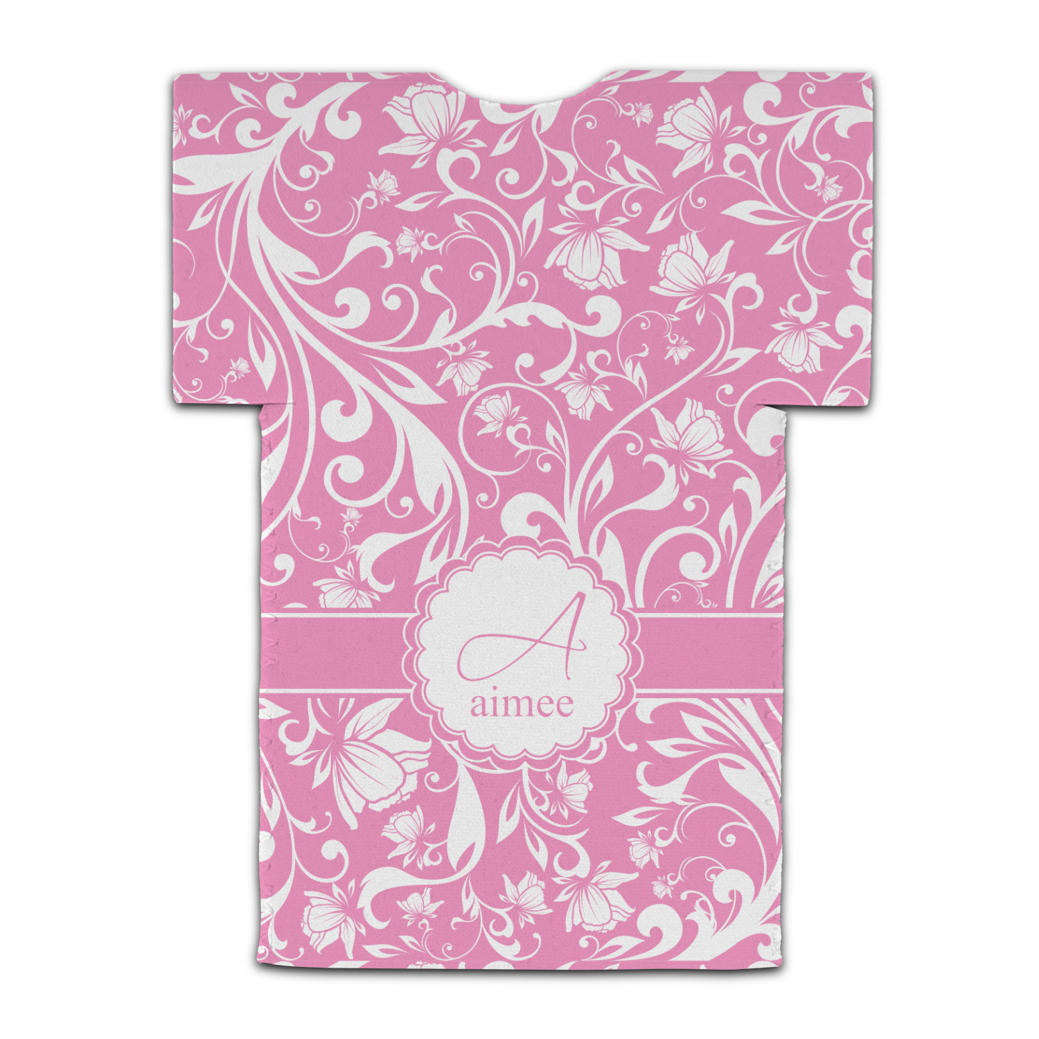 This gorgeous floral pattern combines the classic soft baby pink and white. The design has a classic ribbon in the baby pink trimmed in white. The decorative scalloped label is also in the soft baby pink and white. Add an initial and a name for that personal touch to pull the entire design together.
