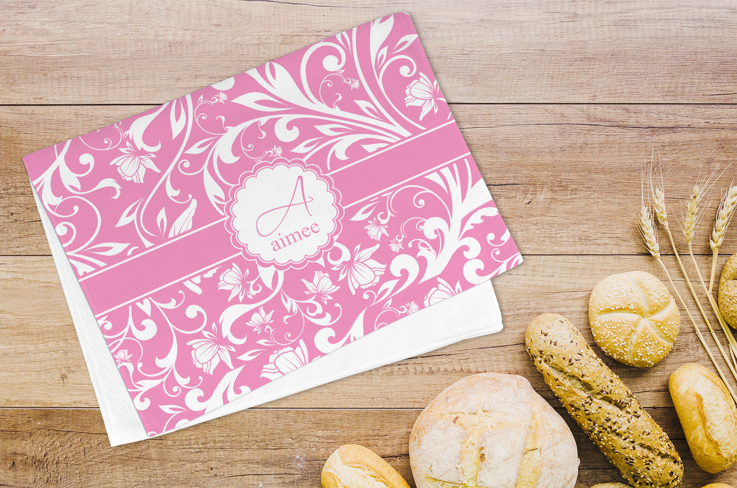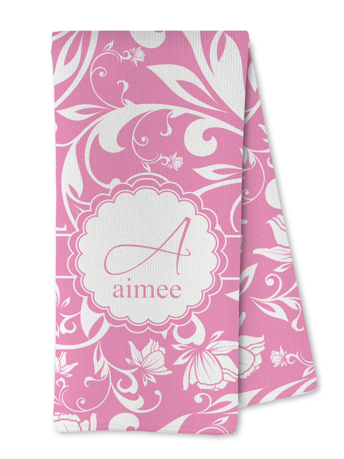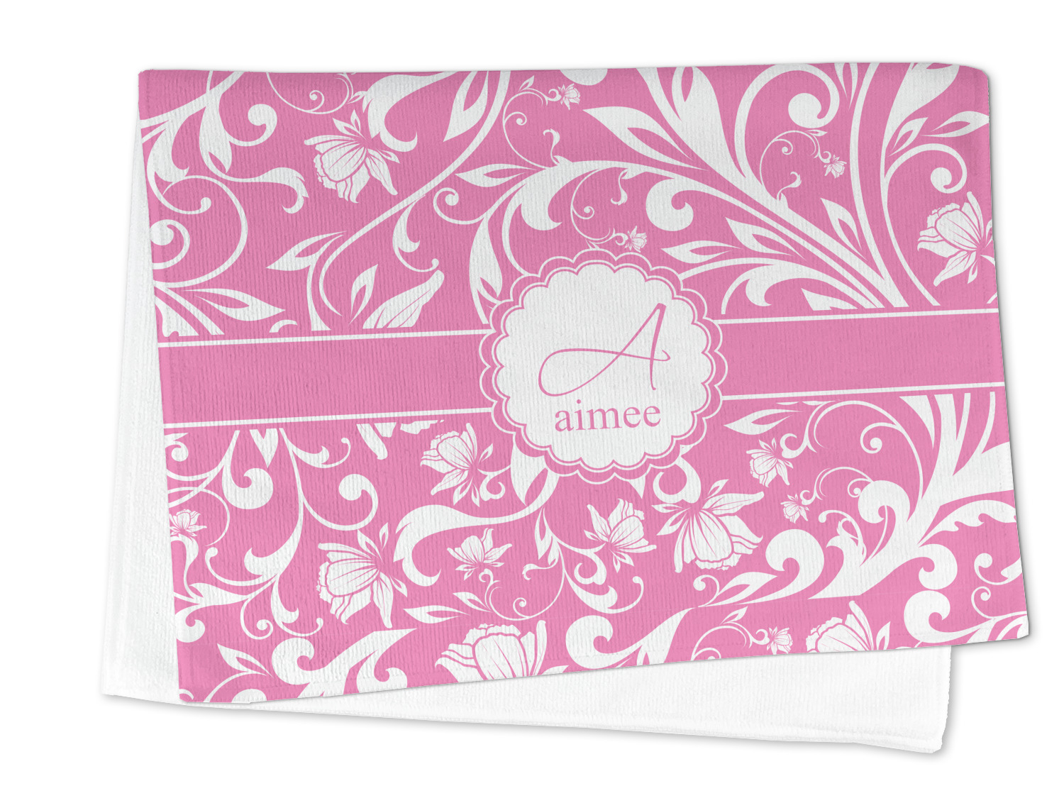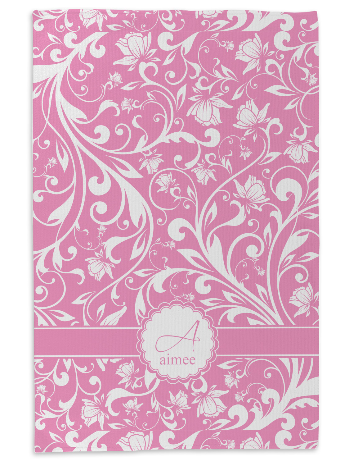 This gorgeous floral pattern combines the classic soft baby pink and white. The design has a classic ribbon in the baby pink trimmed in white. The decorative scalloped label is also in the soft baby pink and white. Add an initial and a name for that personal touch to pull the entire design together.