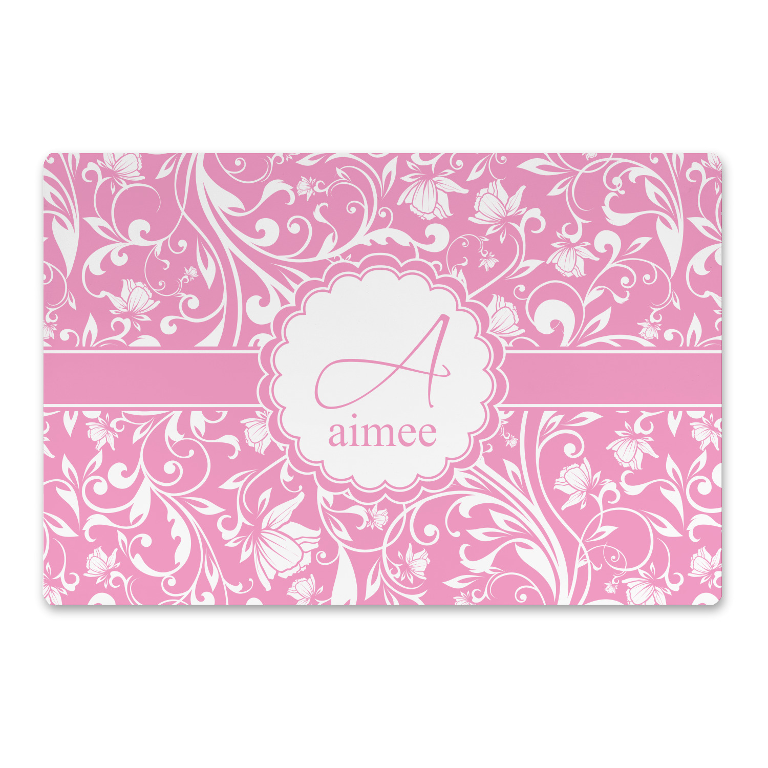 This gorgeous floral pattern combines the classic soft baby pink and white. The design has a classic ribbon in the baby pink trimmed in white. The decorative scalloped label is also in the soft baby pink and white. Add an initial and a name for that personal touch to pull the entire design together.