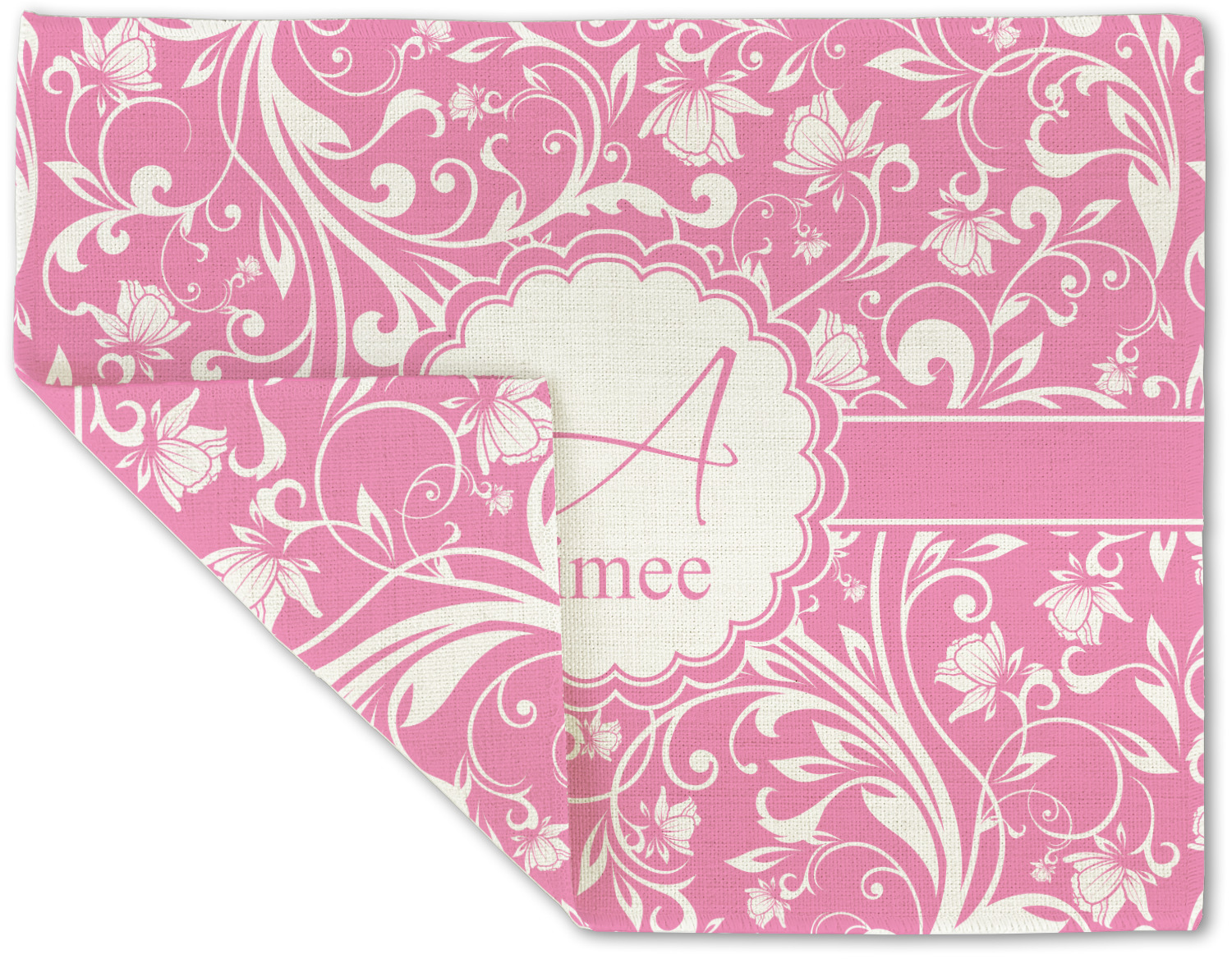 This gorgeous floral pattern combines the classic soft baby pink and white. The design has a classic ribbon in the baby pink trimmed in white. The decorative scalloped label is also in the soft baby pink and white. Add an initial and a name for that personal touch to pull the entire design together.