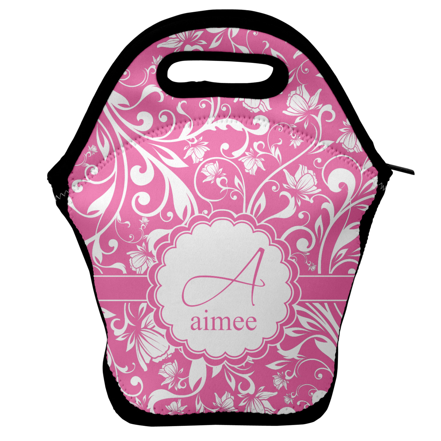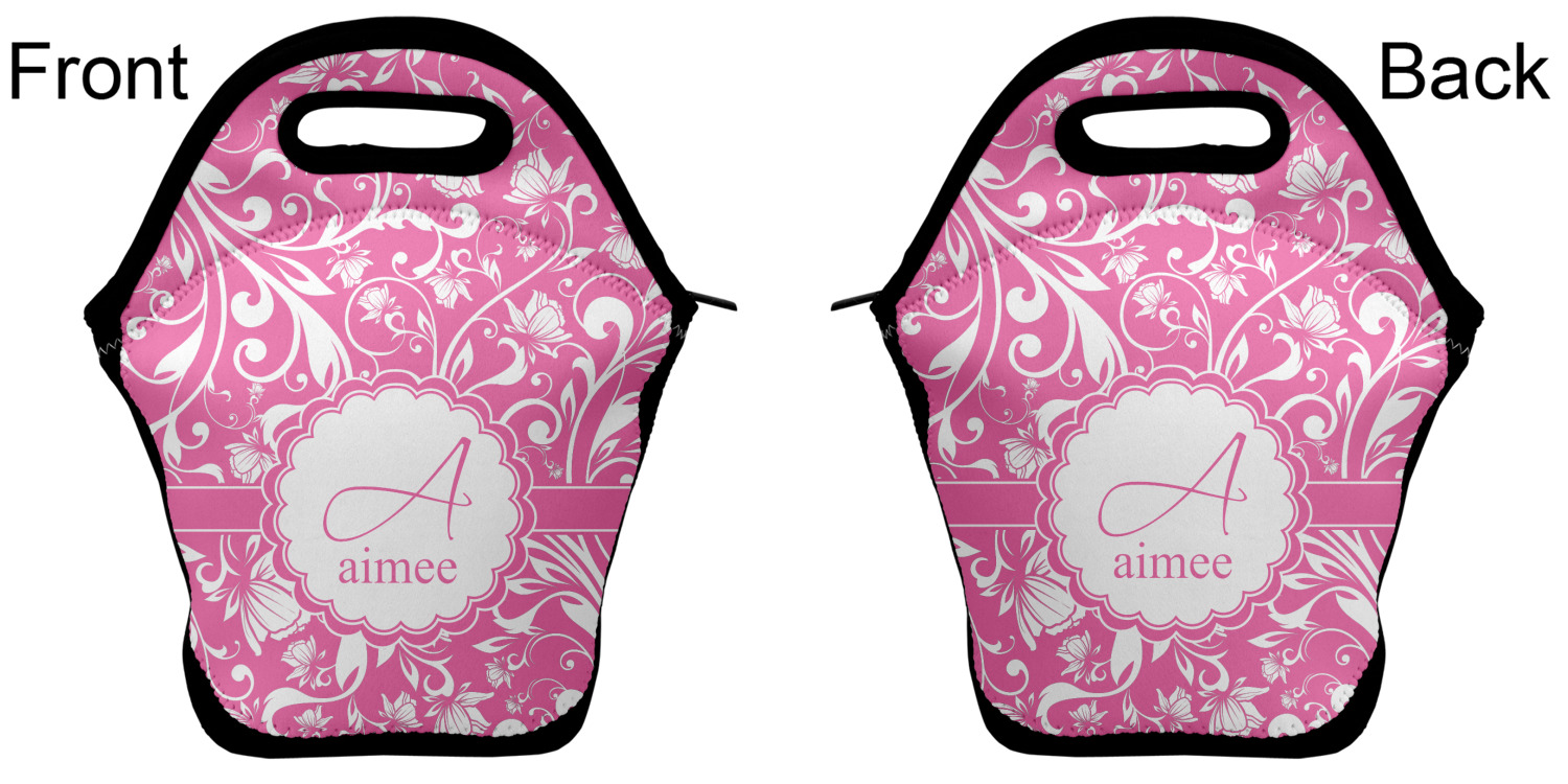 Our personalized lunch bags are made from a strong neoprene, and secure with a zipper closure that lines the top of the bag.The edges of the neoprene are sewn together with a heavy duty stitch, adding to the durability of the bag. The is accompanied by a reinforced handle at its top, for the easy transport of your lunch. We display your personalization across both the front and back of this neoprene lunch bag, while the remaining sides are a sleek black in color. Each bag measures at 13.5 inches tall, and 11.5 inches wide.
