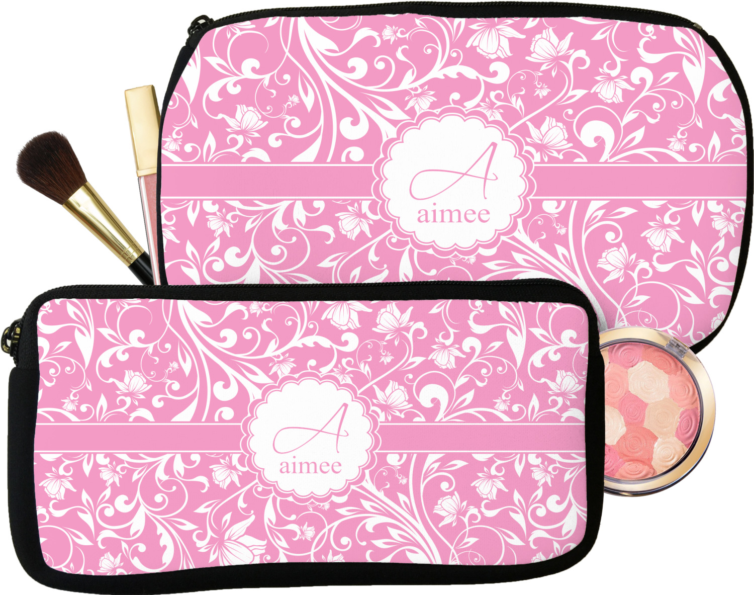Every girl and woman carries makeup and cosmetics in her purse. Why not carry your makeup in these beautiful custom made and personalized makeup bags. These cosmetic bags also make a great bridesmaid gift.