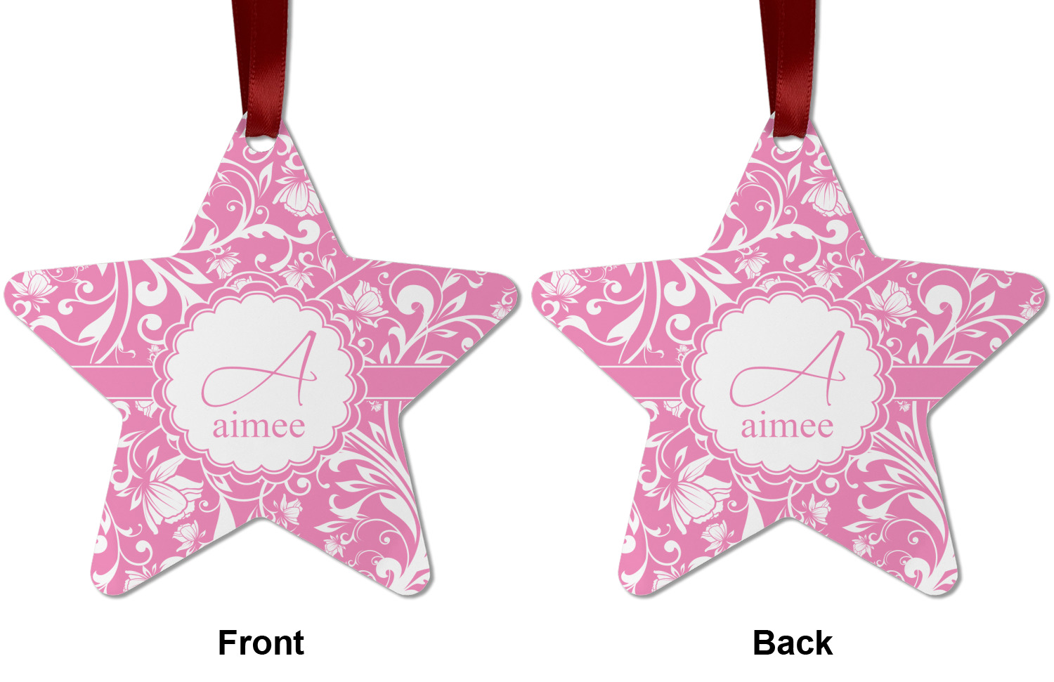 This gorgeous floral pattern combines the classic soft baby pink and white. The design has a classic ribbon in the baby pink trimmed in white. The decorative scalloped label is also in the soft baby pink and white. Add an initial and a name for that personal touch to pull the entire design together.