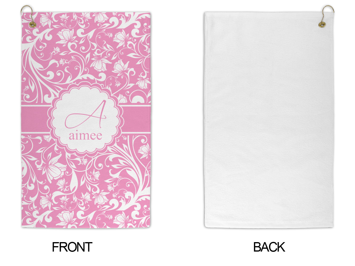 This gorgeous floral pattern combines the classic soft baby pink and white. The design has a classic ribbon in the baby pink trimmed in white. The decorative scalloped label is also in the soft baby pink and white. Add an initial and a name for that personal touch to pull the entire design together.