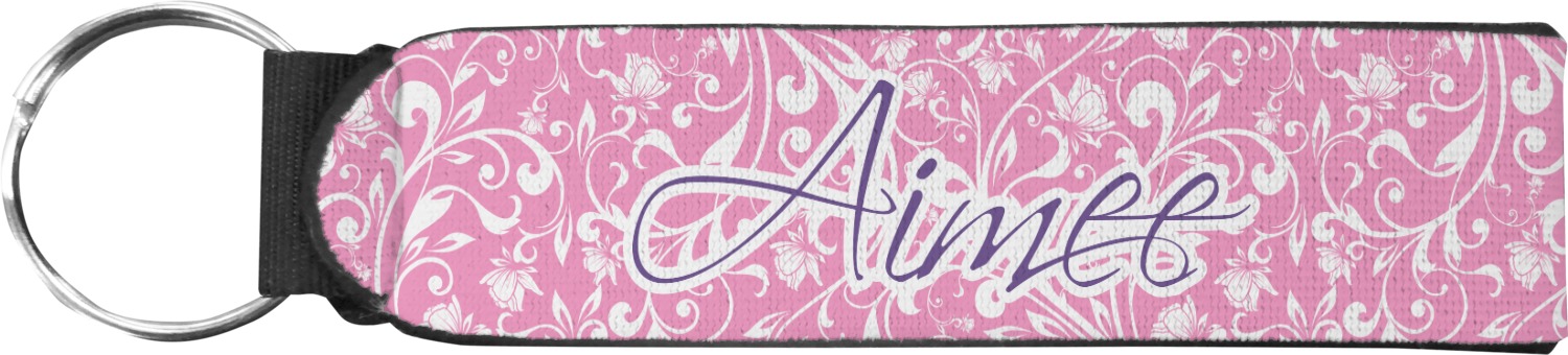 Made from neoprene, these key fob wristlets are comfortable, cushioned, easy to slip on and off; these traits allow it to maintain a slim, yet fashionable appearance, all while optimizing your efficiency. When attaching or removing keys, simply squeeze open the included metal ring. These fobs measure at around 4 inches, and have a bit of a stretch. Thus, they are best suited for small to medium size wrists. If you require a larger size, check out our webbing keychain fob for larger sizing.
