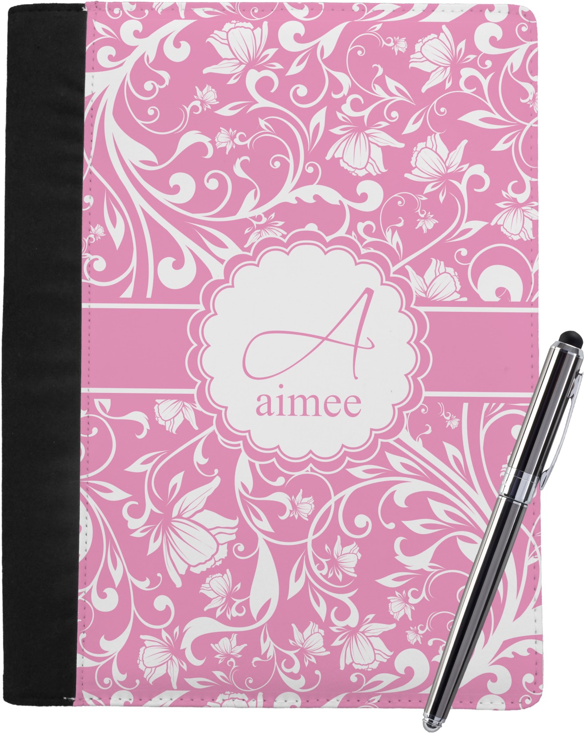These personalized padfolios are made from a black, polyester microfiber and features a standard, 50-page notepad. However, these black padfolios can accommodate a pad with up to 100 pages. This model also features a slot pocket for any loose sheets of paper, small pockets for business cards, and an elastic band to secure a pen. We print your personalization across the front of this notepad portfolio in bright, vibrant color. These padfolios come in 2 sizes, Medium - approximately 10.25" x 8" for 5" x 8" paper and Large - approximately 12.5" x 8.5" for 8.5" x 11" paper.