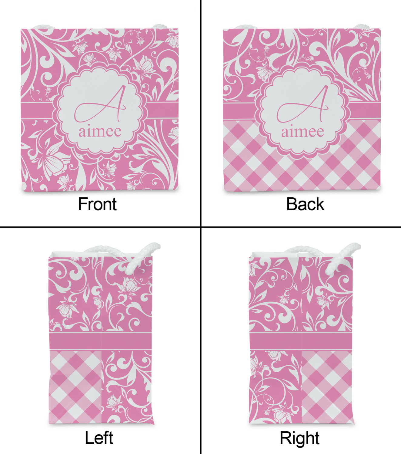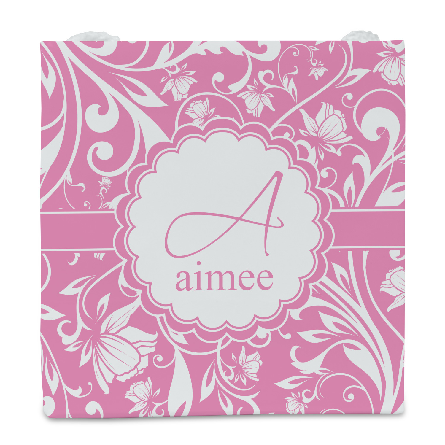 This gorgeous floral pattern combines the classic soft baby pink and white. The design has a classic ribbon in the baby pink trimmed in white. The decorative scalloped label is also in the soft baby pink and white. Add an initial and a name for that personal touch to pull the entire design together.