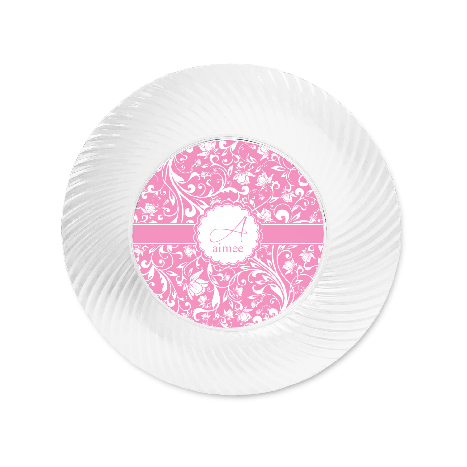 Made from a beautiful clear plastic plate as a base, your design is printed to the underside of the plate. The outside of the plate has a classic swirl texture to it for a high quality look and feel.